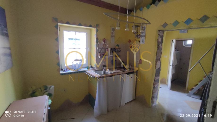 U prizemlju se nalazi velika terasa, kuhinja/blagovaona, dnevni boravak/spavaća soba ii kupaonica s wc-om.