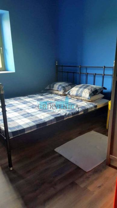 Etaža se nalazi na prvom katu kuće i sastoji se od tri spavaće sobe, kuhinje sa blagovaonicom i malim dnevnim, kupaonice i dvije terase te dva spremišta unutar zajedničkog dvorišta. U prizemlju samo još jedan stan. Nova fasada je napravljena prije dvije godine, a unutrašnjost stana kompletno je uređena i namještena prije tri godine. Prodaje se namješteno sa svim uređajima koji su još pod garancijom.