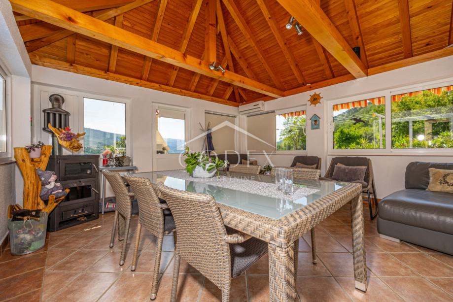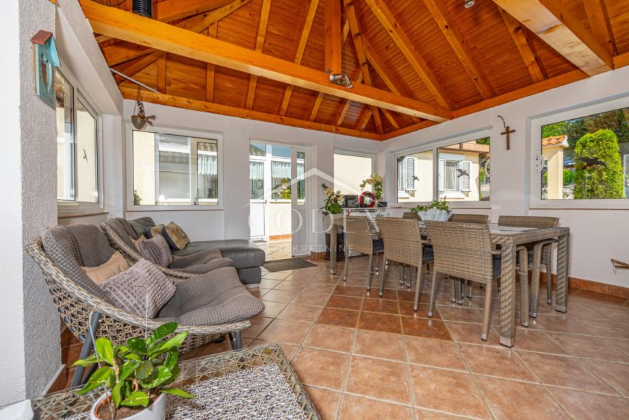 Kuća je klimatizirana, opremljena centralnim grijanjem na plin te pokrivena alarmnim sustavom. Uz samu kuću nalazi se klimatizirana i grijana sjenica – potpuno ostakljena prostorija s peći na drva, idealna za okupljanja uz panoramski pogled.