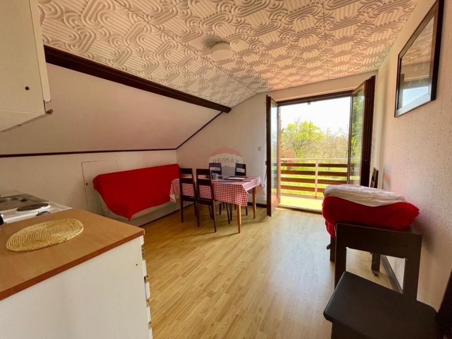 Na katu su smještene preostale tri stambene jedinice. Prva jedinica sastoji se od dnevnog boravka sa spavaćim prostorom, kuhinje s blagovaonicom, kupaonice, dodatnog WC-a i terase.
