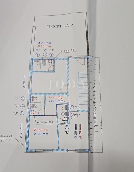 Izlaz na okućnicu je sa kata,a moguće je i sa vanjske strane kuće.