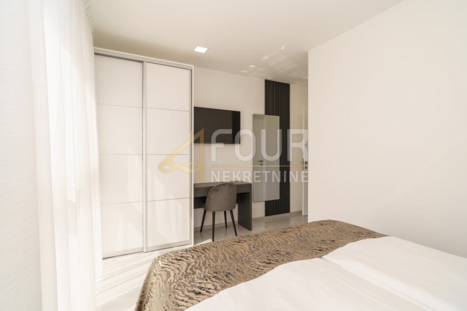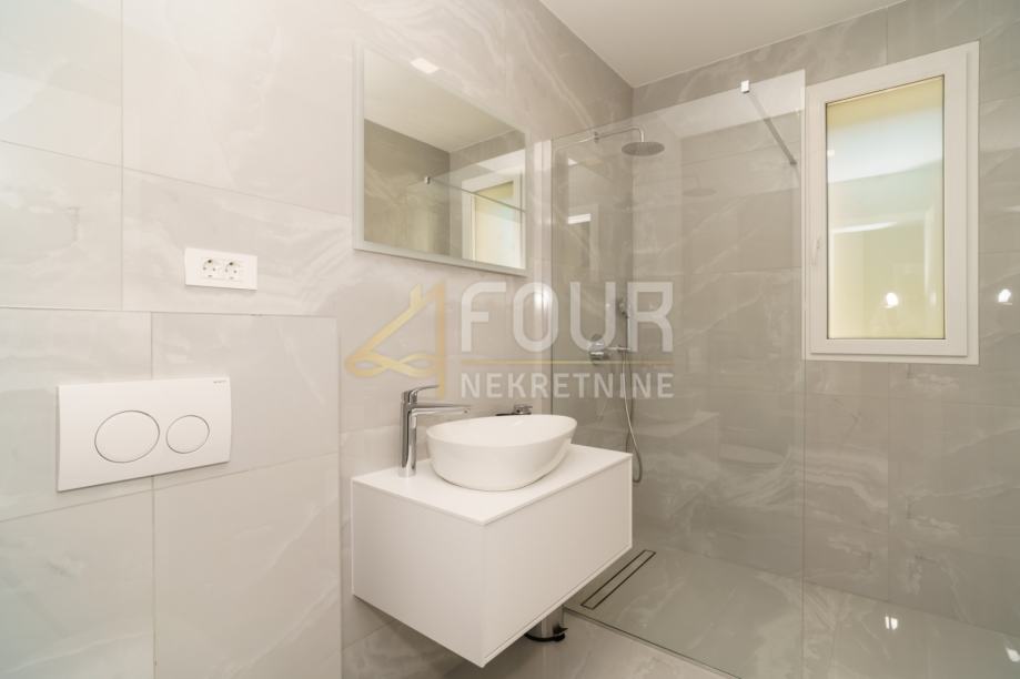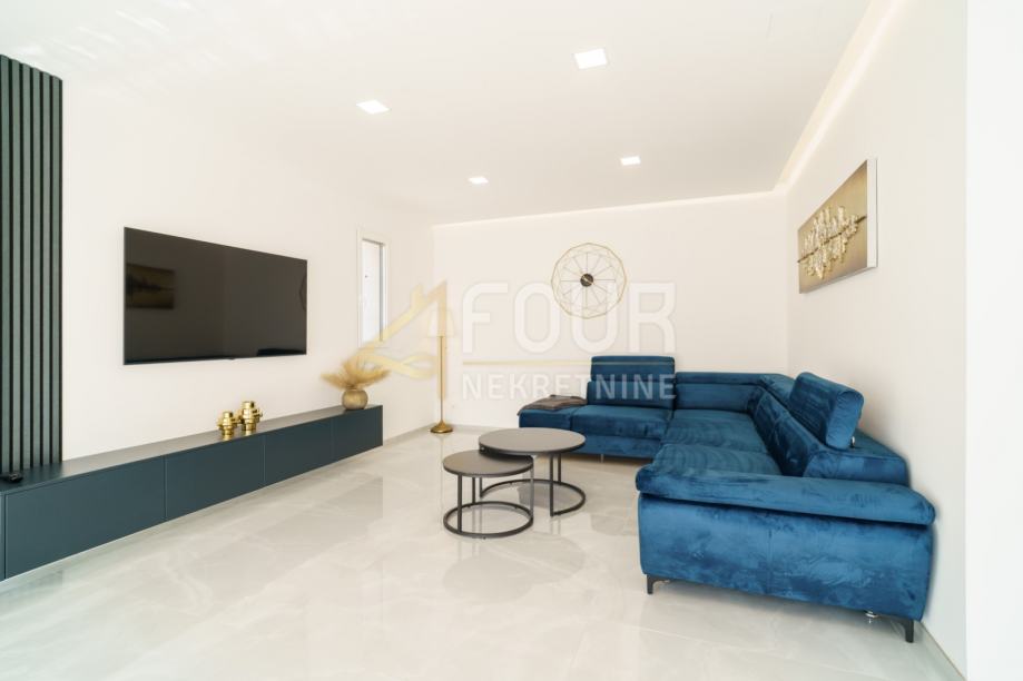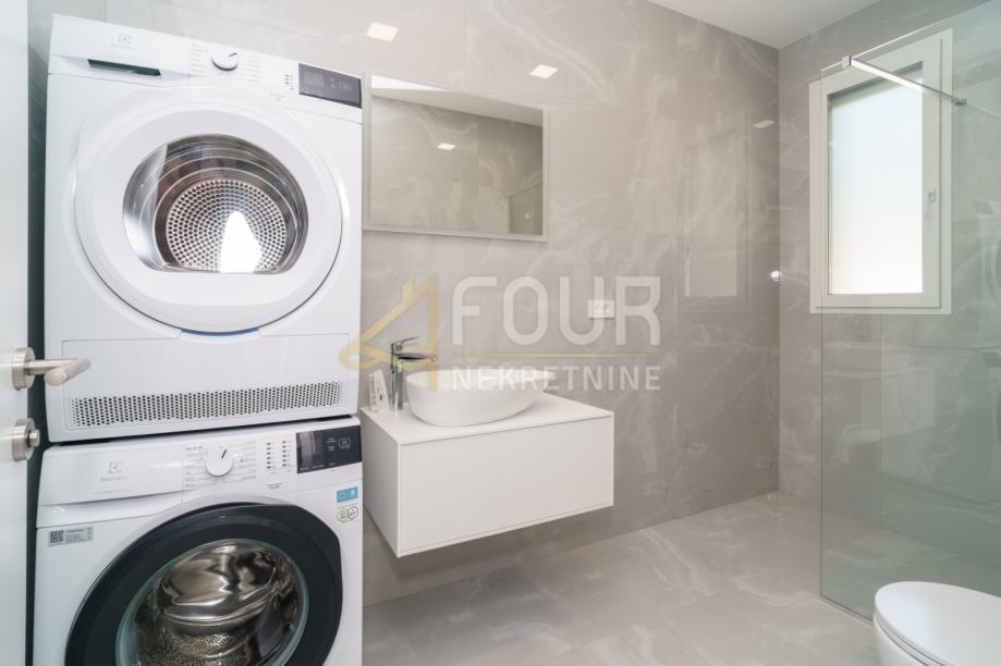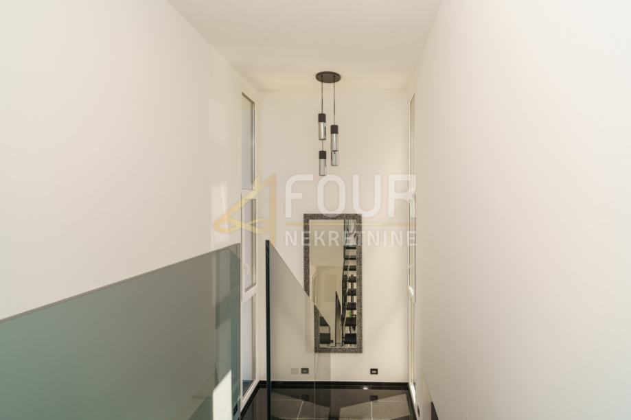 Opremljena je podnim grijanjem, klima uređajem, PVC stolarijom, električnim roletama, protuprovalnim vratima, video nadzorom i alarmnim sustavom.