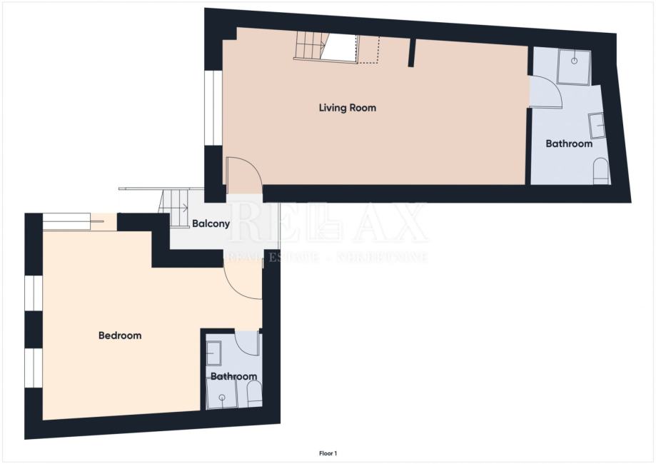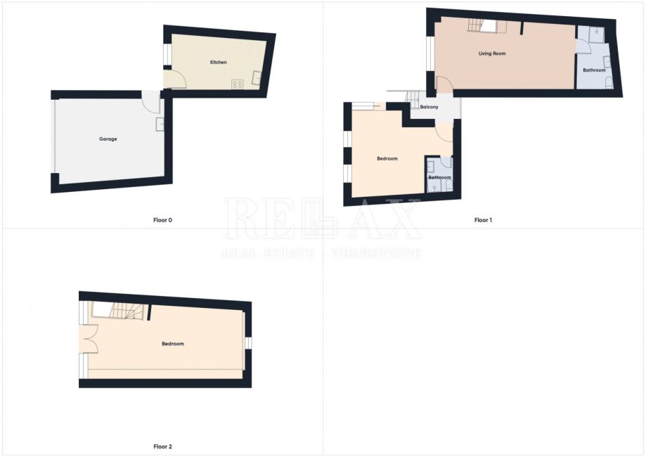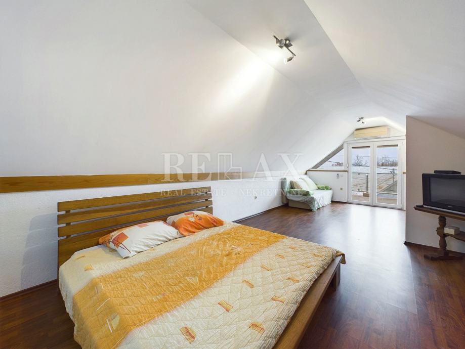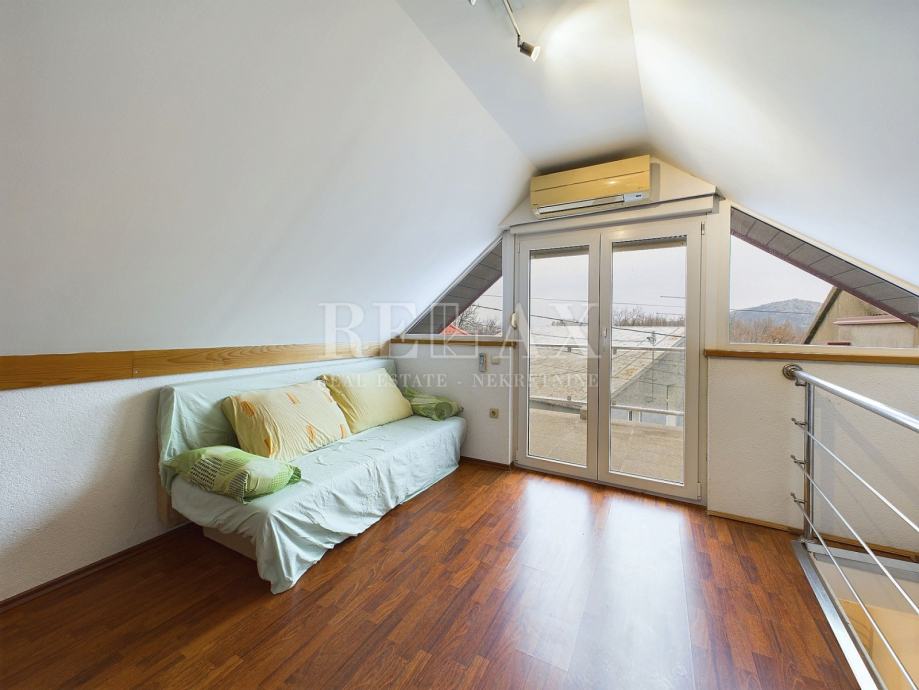 Prizemlje se sastoji od prostrane kuhinje s blagovaonicom, malog wc-a s ulazom iz dvorišta te garaže s direktnim pristupom, osiguravajući jedno parkirno mjesto. Prvi kat je podijeljen u dva dijela – prostranu spavaću sobu s vlastitom kupaonicom i puno prirodnog svjetla, te dnevni boravak s još jednom kupaonicom i stepenicama koje vode u potkrovlje. U potkrovlju se smjestila još jedna velika spavaća soba s vlastitim balkonom, s kojeg se pruža predivan pogled na more i okolinu.