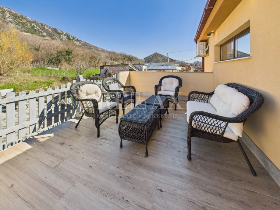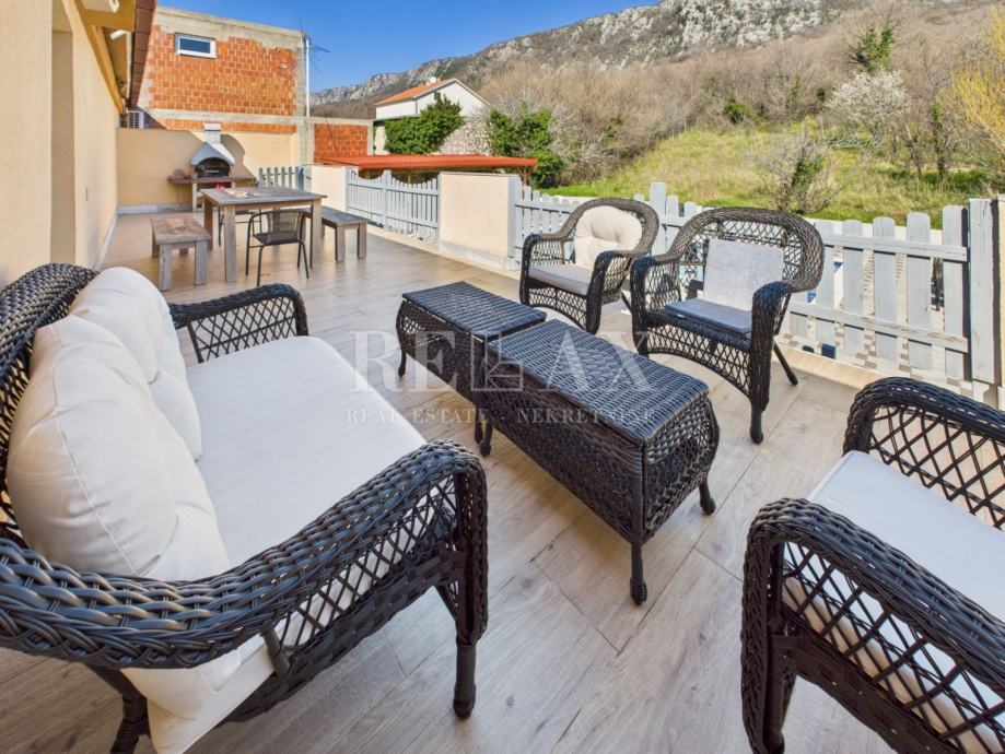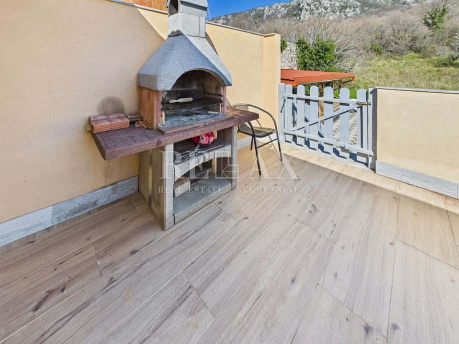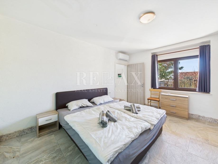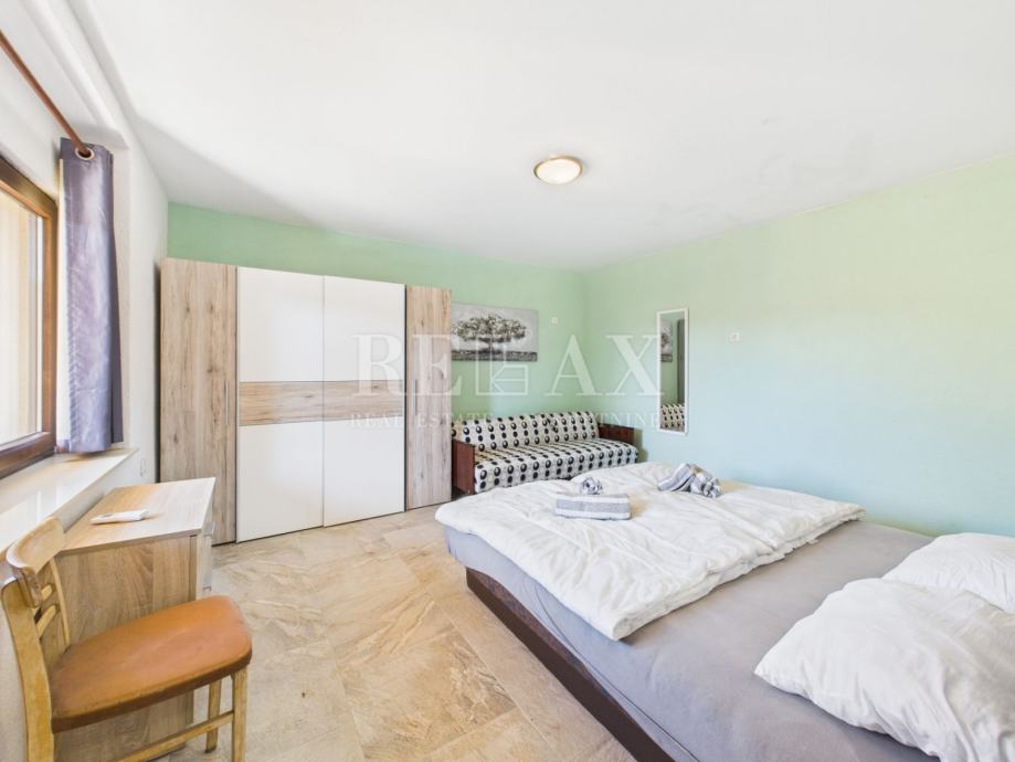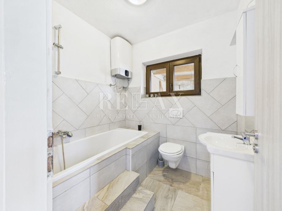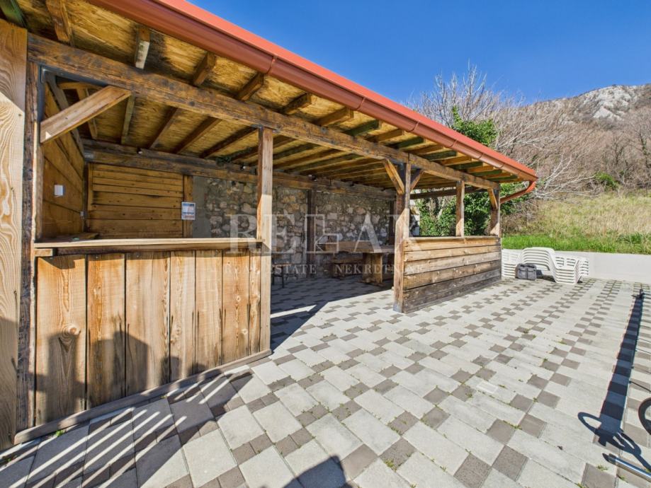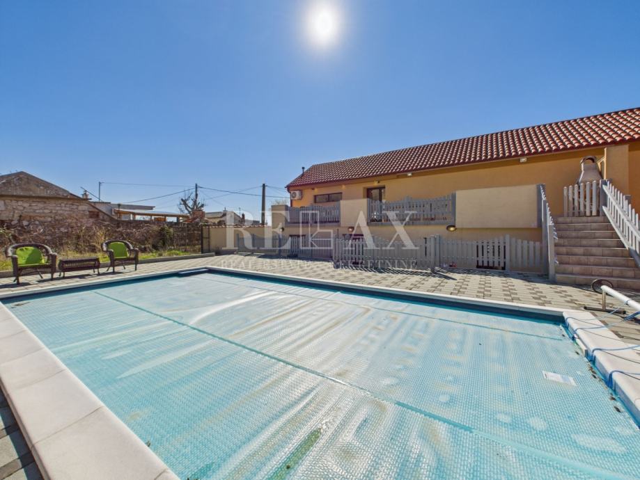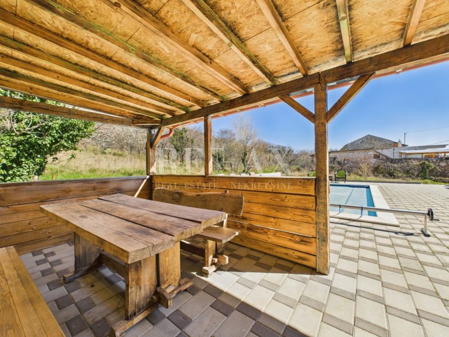 Okućnica je pažljivo uređena i nudi brojne sadržaje za opuštanje i druženje. Bazen sa sunčalištem, natkrivena terasa za uživanje na otvorenom te zelena površina koja se može urediti kao vrt ili igralište za djecu, čine ovaj prostor izuzetno ugodnim za boravak. Unutar dvorišta osigurano je parkirno mjesto za četiri automobila.