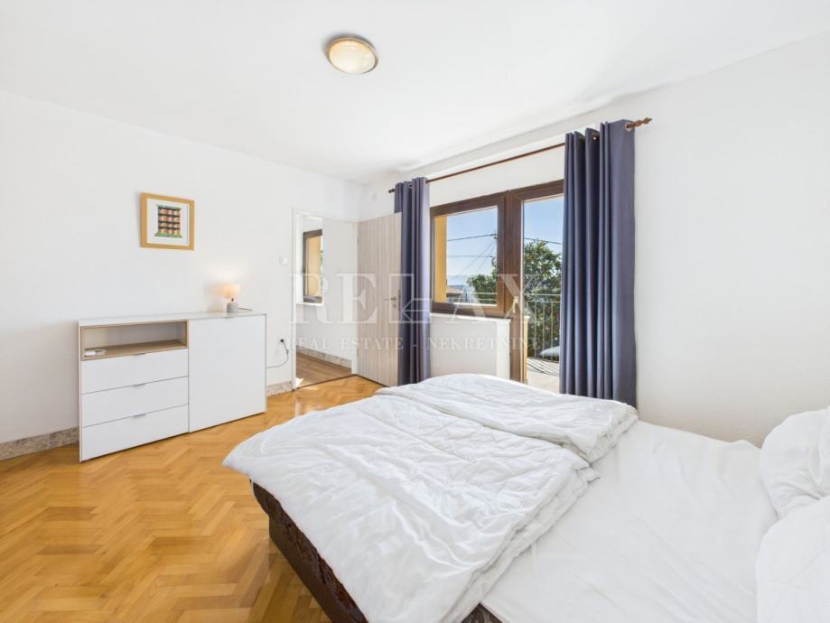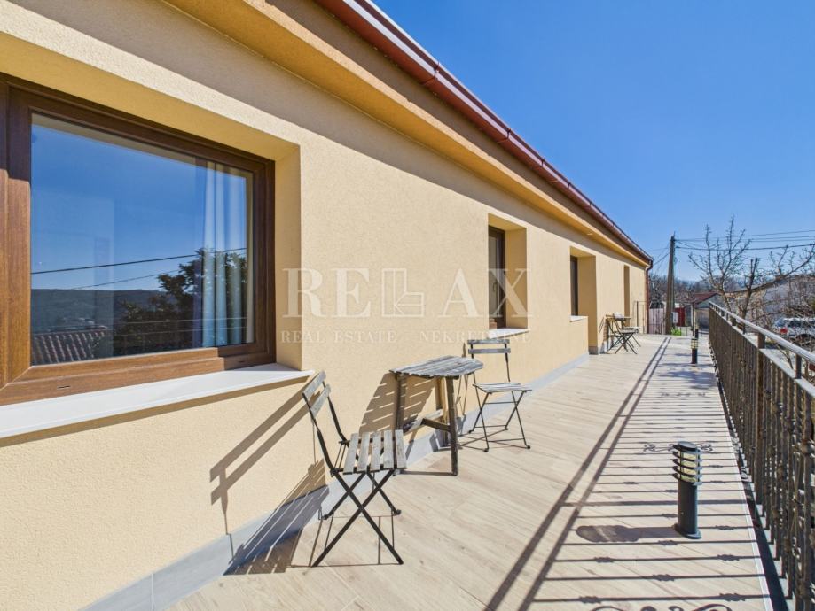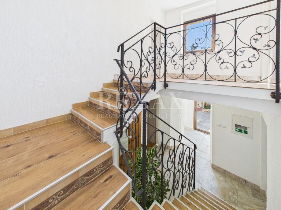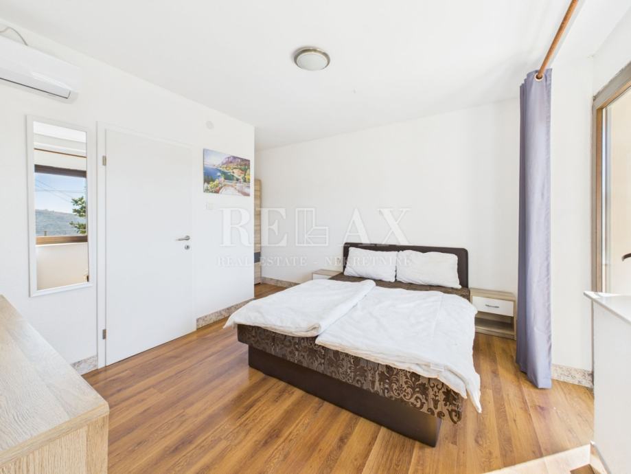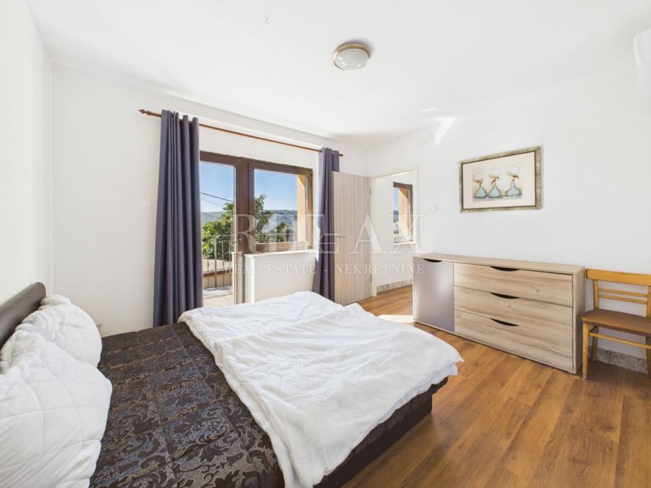 Kuća se sastoji od prizemlja i kata, povezanih unutarnjim stepenicama. U prizemlju se nalazi kuhinja s blagovaonicom, dvije prostrane spavaće sobe s vlastitim kupaonicama, dodatna manja kupaonica s tušem i WC-om te hodnik s ostavom. Na katu je smješten prostrani dnevni boravak, još dvije spavaće sobe s kupaonicama te dvije velike terase koje pružaju pogled na okolnu prirodu i ulicu.
