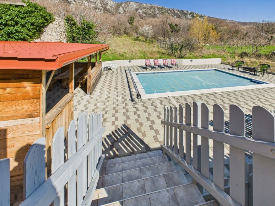 Ova šarmantna kuća s bazenom u Bribiru savršen je izbor za obiteljski život, vikendicu ili investiciju u turistički najam, zahvaljujući svojoj atraktivnoj lokaciji i autentičnom mediteranskom stilu.