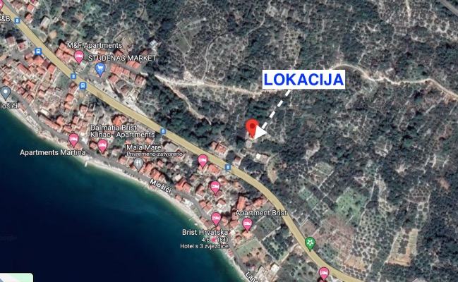 Prodaje se prekrasna kuća s dva potpuno namještena dvosobna apartmana i pogledom na more u mjestu Brist. Sastoji se od prizemlja i kata, ukupne brutto stambene površine 118,15 m2. Ima prostranu okućnicu, ukupna površina parcele je 200 m2. Potpuno je namještena i moderno uređena. U dvorištu oko kuće se nalazi prekrasan vrt omeđen kamenim zidovima. Izvrstan turistički potencijal na mirnoj lokaciji nedaleko od mora.
