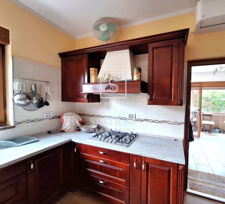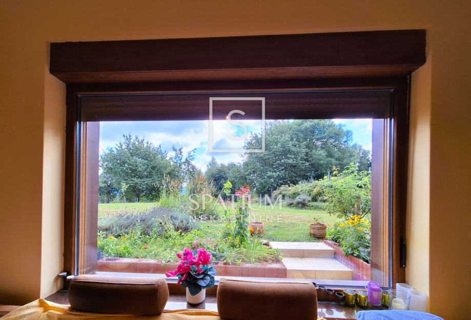 Okućnica je održavana i uređena zelenim površinama s puno cvijeća i velikim voćnjakom. Idealno mjesto za opuštanje i uživanje u svježem zraku.