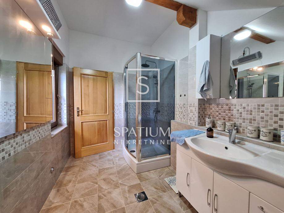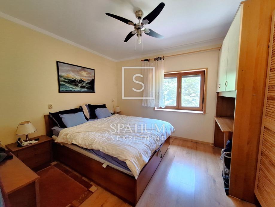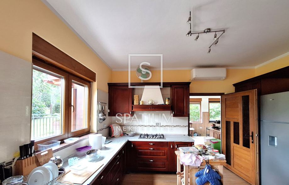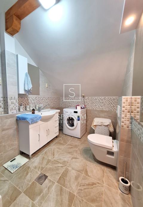 U suterenu se nalazi prostrana garaža za dva automobila s automatskim vratim. Pored su još dva prostora, svaki od 20 m2, koji služe kao radiona i smočnica.