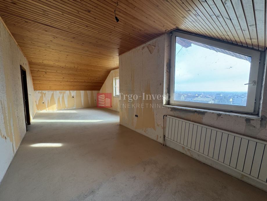 Kuća se nalazi u mirnom okruženju s pogledom na grad, a blizina škole i vrtića ju čini idealnom za obiteljski život.