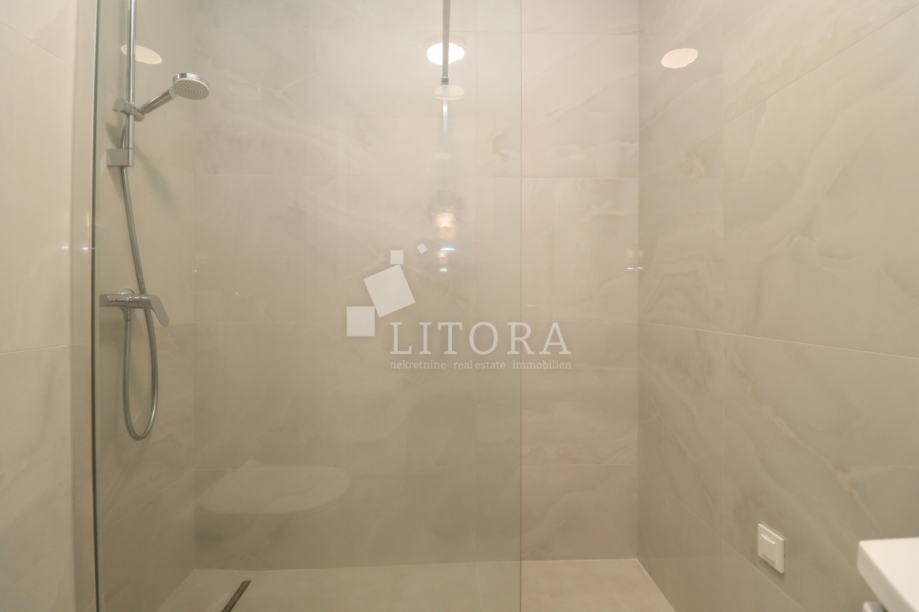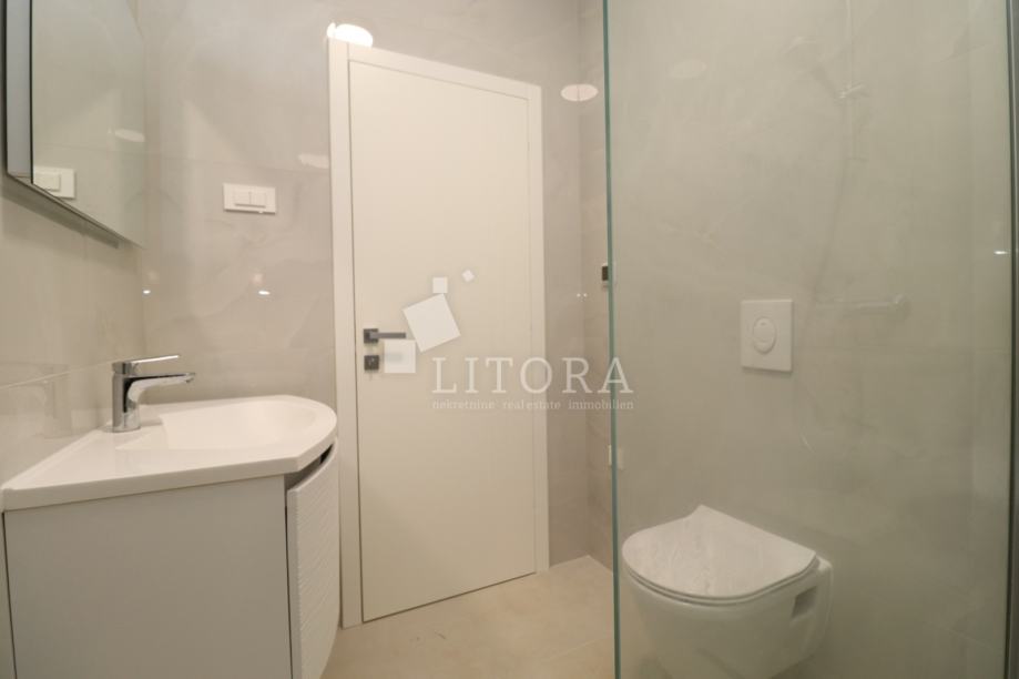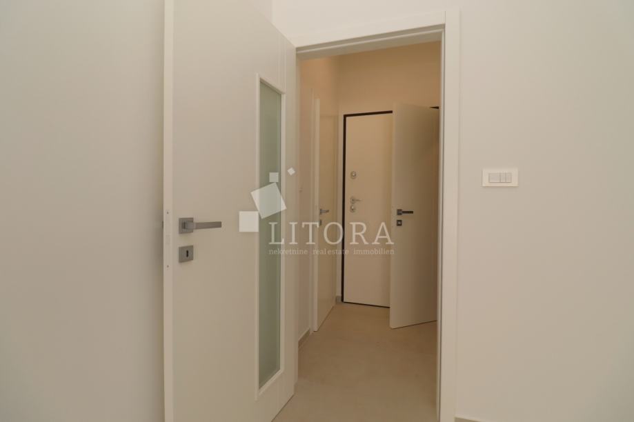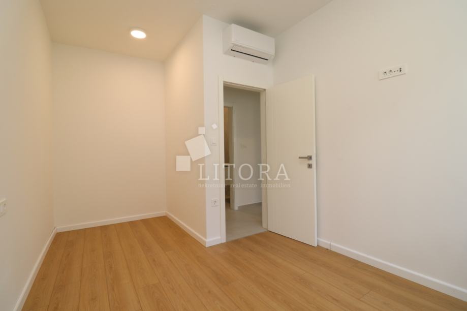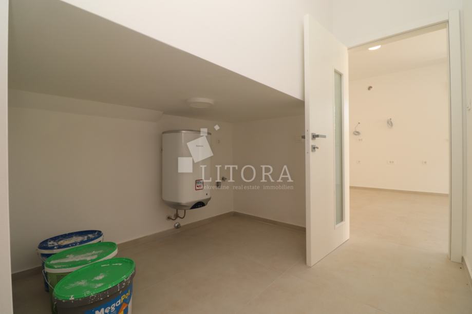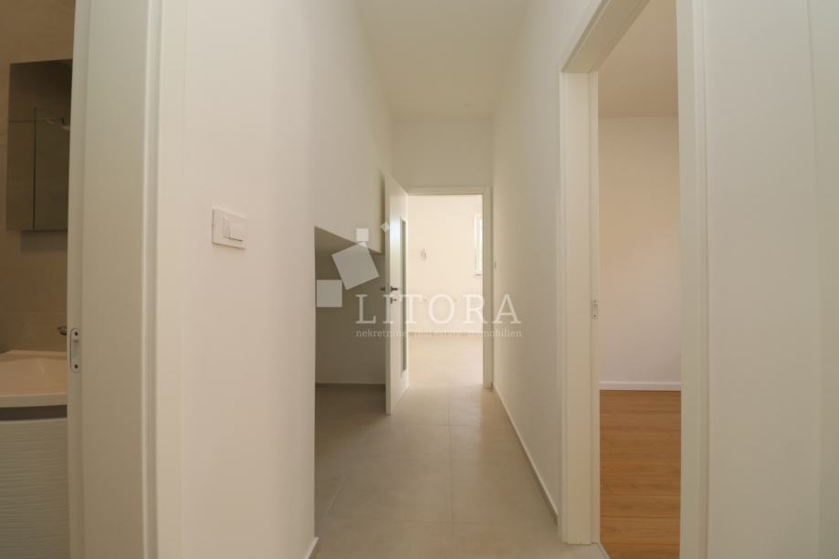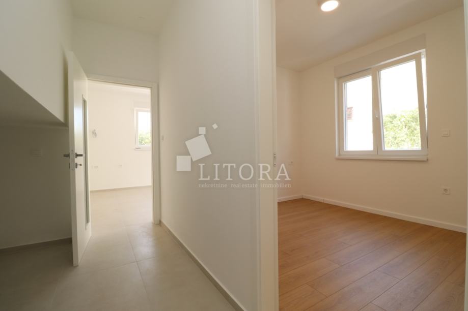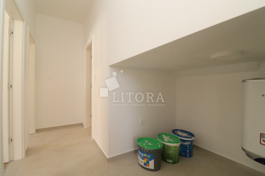 Apartman se nalazi u prizemlju novoizgrađene višestambene zgrade, orijentiran na sjevernu stranu. Ukupna korisna površina iznosi 70,77 m², a sastoji se od hodnika, ostave, WC-a, kuhinje s blagovaonicom i dnevnim boravkom s izlazom na terasu i popločano dvorište površine 80,12 m². Nadalje, stan ima još jedan hodnik, dvije spavaće sobe, kupaonicu i dodatno spremište. Apartmanu pripada jedno parkirno mjesto.