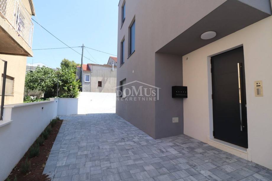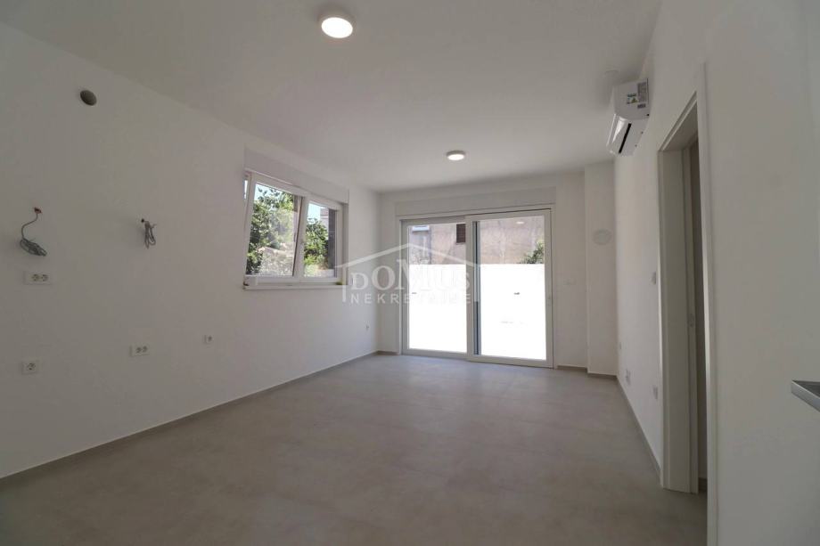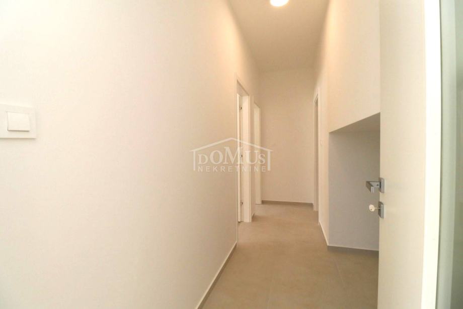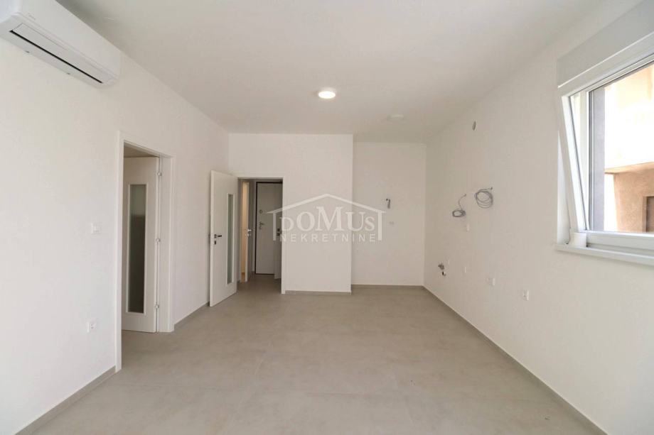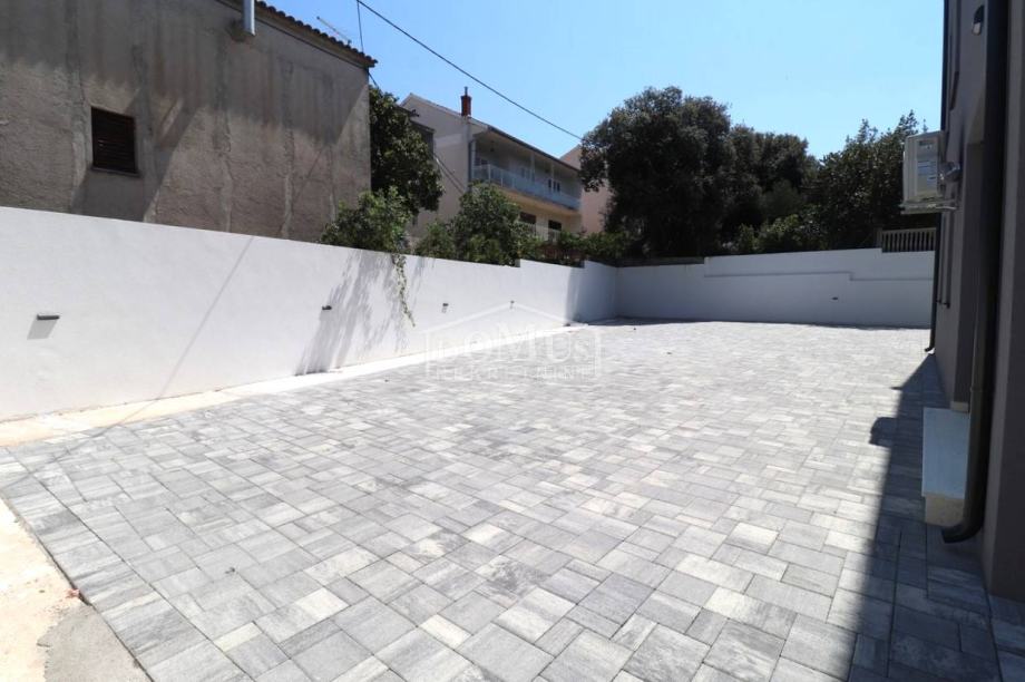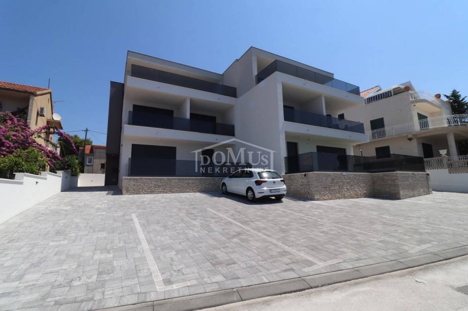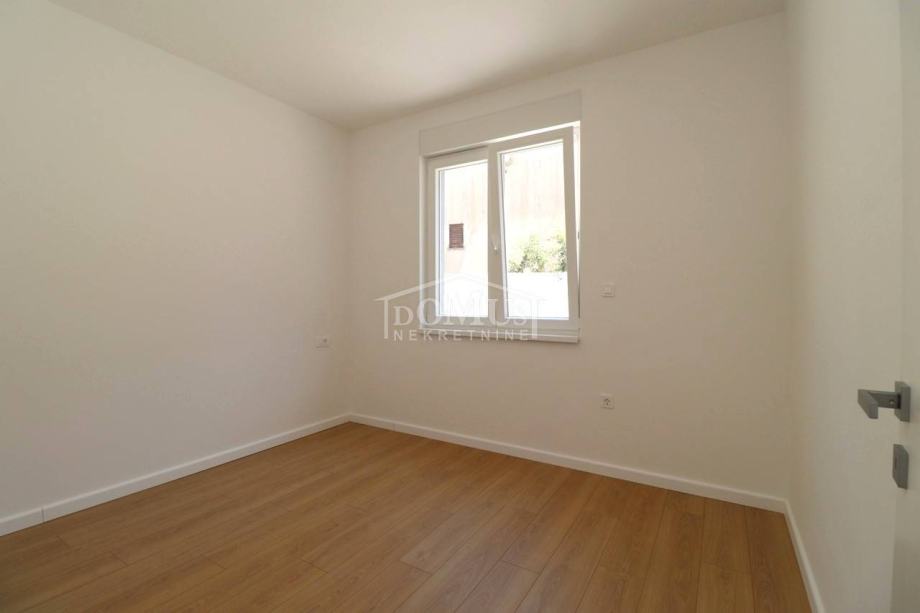 Novogradnja, 1. red od mora, dvosoban apartman sa ukupno 93,56m2 korisne površine, a nalazi se u prizemlju stambene zgrade koja ima ukupno tri etaže sa ukupno 5 stambenih jedinica, a orijentiran je na sjeverozapadnu stranu. Apartman se sastoji od kuhinje, blagovaone i dnevnog boravka u cjelini, ostava, wc, 3 hodnika, dvije spavaće sobe i kupaonice. Apartmanu pripada vrt 149,37m2 te jedno parkirno mjesto. Apartman nije namješten, građen je od visoko kvalitetnih materijala, opremljen klima uređajima u svim sobama, podno grijanje u kupaonici, električni podizači roleta, komarnici, video-portafon. Useljenje predviđeno za ljeto 2024. Kupci su oslobođeni plaćanja poreza na promet nekretnina.