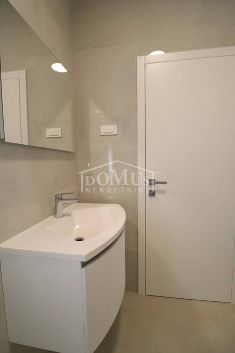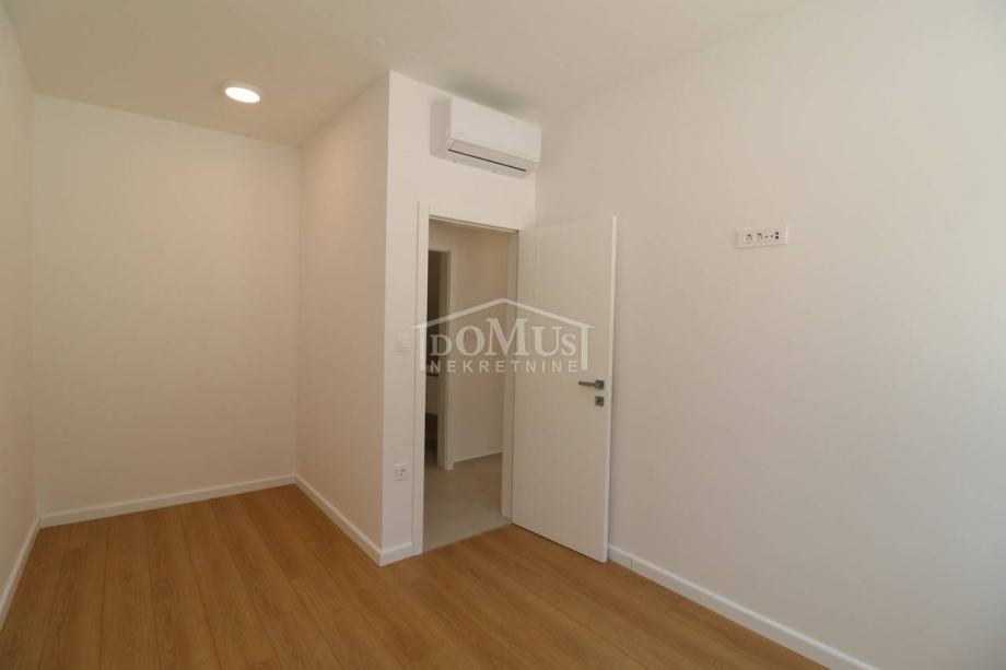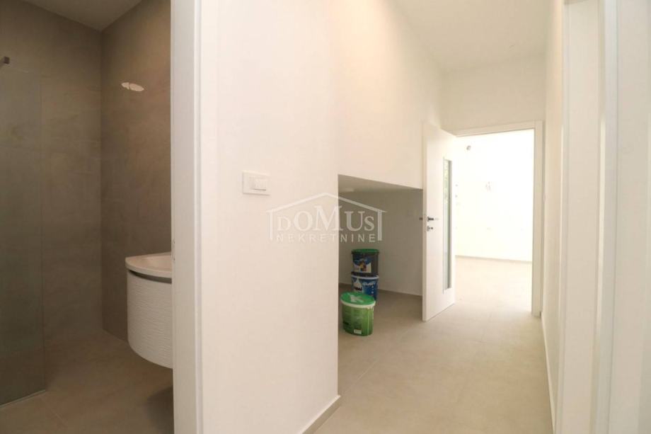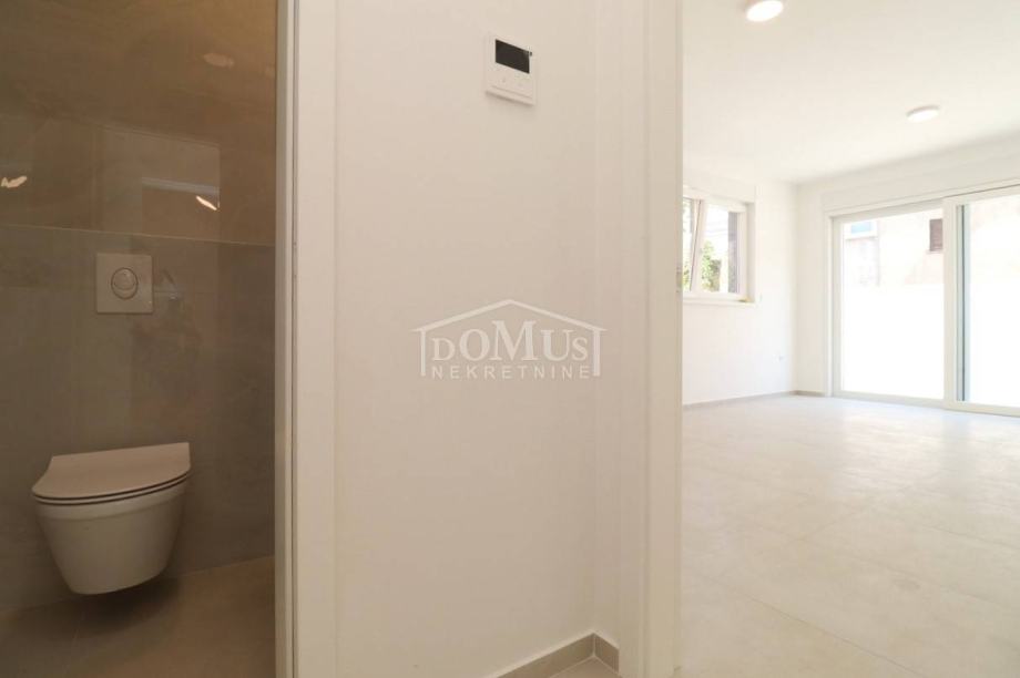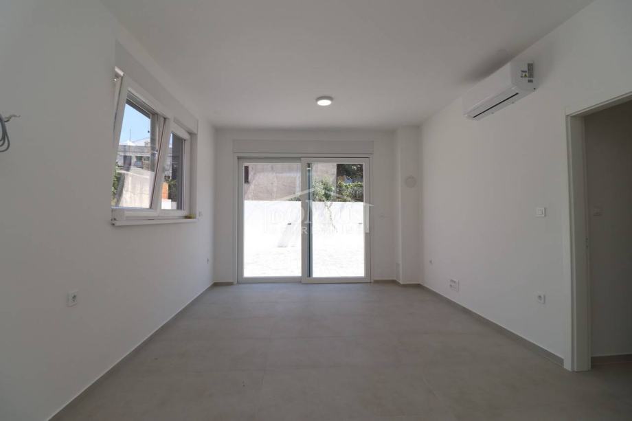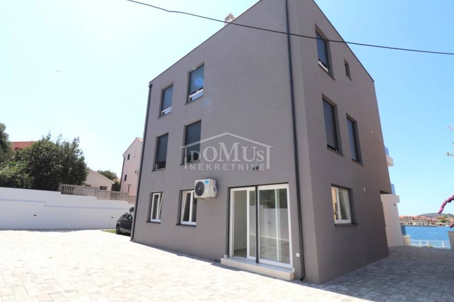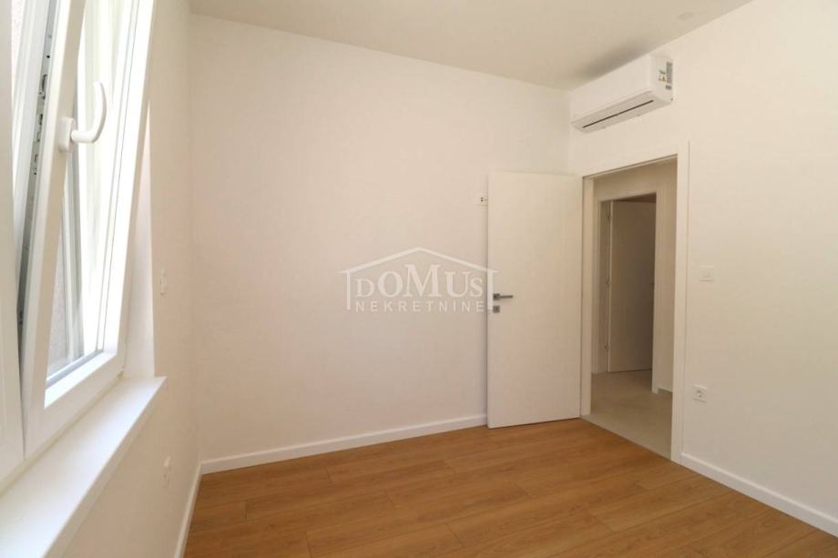 Novogradnja, 1. red od mora, dvosoban apartman sa ukupno 93,56m2 korisne površine, a nalazi se u prizemlju stambene zgrade koja ima ukupno tri etaže sa ukupno 5 stambenih jedinica, a orijentiran je na sjeverozapadnu stranu. Apartman se sastoji od kuhinje, blagovaone i dnevnog boravka u cjelini, ostava, wc, 3 hodnika, dvije spavaće sobe i kupaonice. Apartmanu pripada vrt 149,37m2 te jedno parkirno mjesto. Apartman nije namješten, građen je od visoko kvalitetnih materijala, opremljen klima uređajima u svim sobama, podno grijanje u kupaonici, električni podizači roleta, komarnici, video-portafon. Useljenje predviđeno za ljeto 2024. Kupci su oslobođeni plaćanja poreza na promet nekretnina.