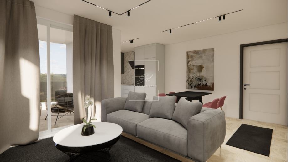Stan se odlikuje modernim dizajnom, visokim standardom gradnje te funkcionalnim rasporedom. Vrt u vlasništvu pruža mir i dodatni prostor za uživanje, dok parkirno mjesto osigurava praktičnost i sigurnost.