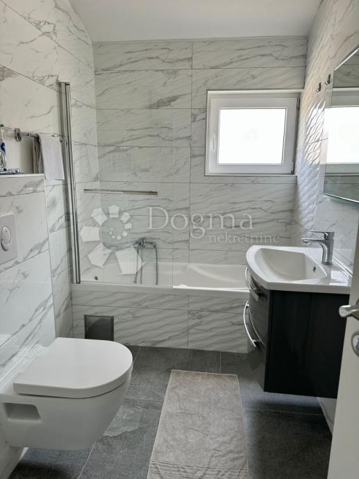 U prizemlju (134 m2 tlocrtne površine) Vas dočekuje lijepo namješten dnevni boravak, moderna kuhinja i blagovaonica koji se sjedinjuju u skladan prostor s izlaskom na natkrivenu terasu. Tri prostrane, ugodno namještene spavaće sobe , kupaonica, ostava, skladište, dva odvojena ulaza i dvije terase također pripadaju prizemlju.