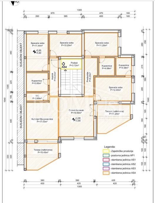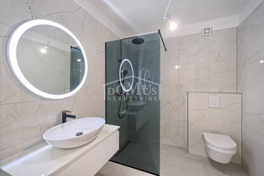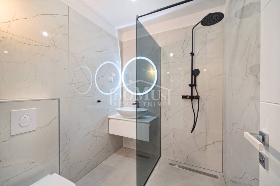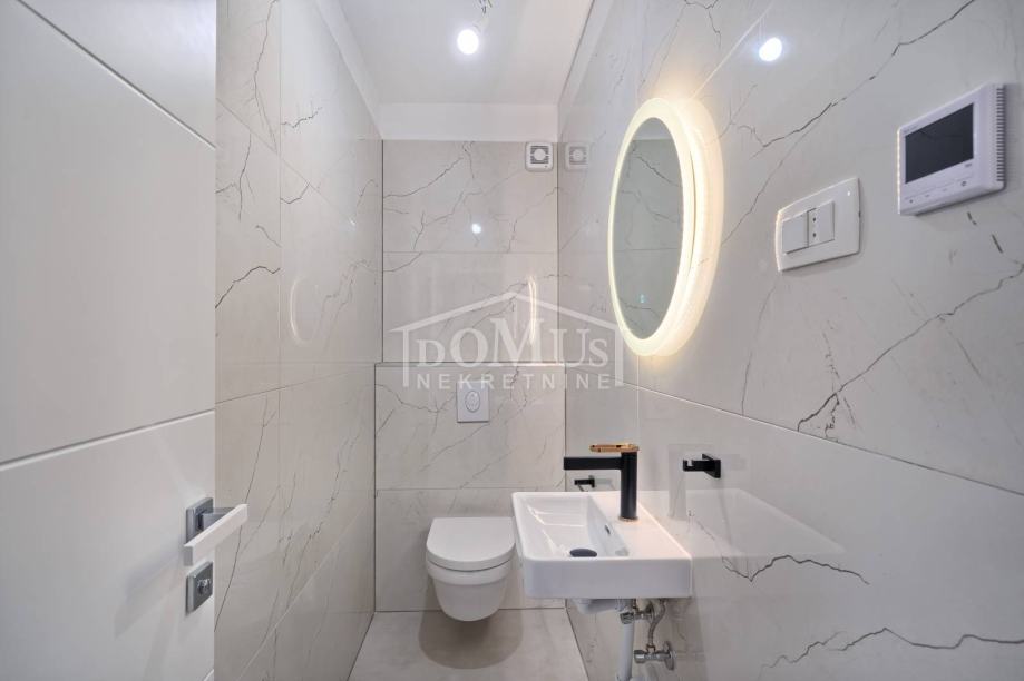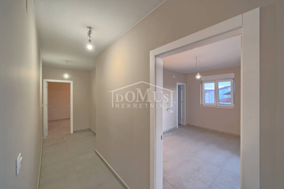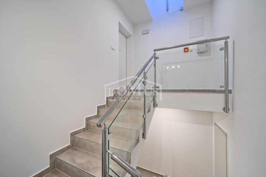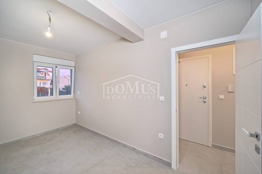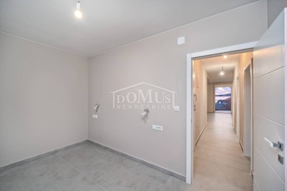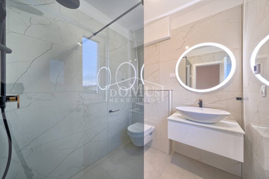 Brodarica, novogradnja, 150m od mora, penthouse sa ukupno 112,39m2 korisne površine. Isti se nalazi na 2.katu stambene zgrade koja ima ukupno tri etaže sa ukupno 5 stambenih jedinica, a orijentiran je na jugoistočnu stranu. Apartman površine 109,99m2 se sastoji od hodnika, predsoblja, kuhinje, blagovaone i dnevnog boravka u cjelini, dvije terasa od 10,45m2 i 11,25 m2 s pogledom na more, 4 spavaće sobe, 3 kupaonice i wc. Apartmanu pripadaju dva parkirna mjesta. Građen je od visoko kvalitetnih materijala keramike i sanitarija, klima uređaj u dnevnom boravku, podno grijanje u kupaonici, električni podizači roleta, komarnici, portafon. Kupac je oslobođen plaćanja poreza na promet nekretnina.
