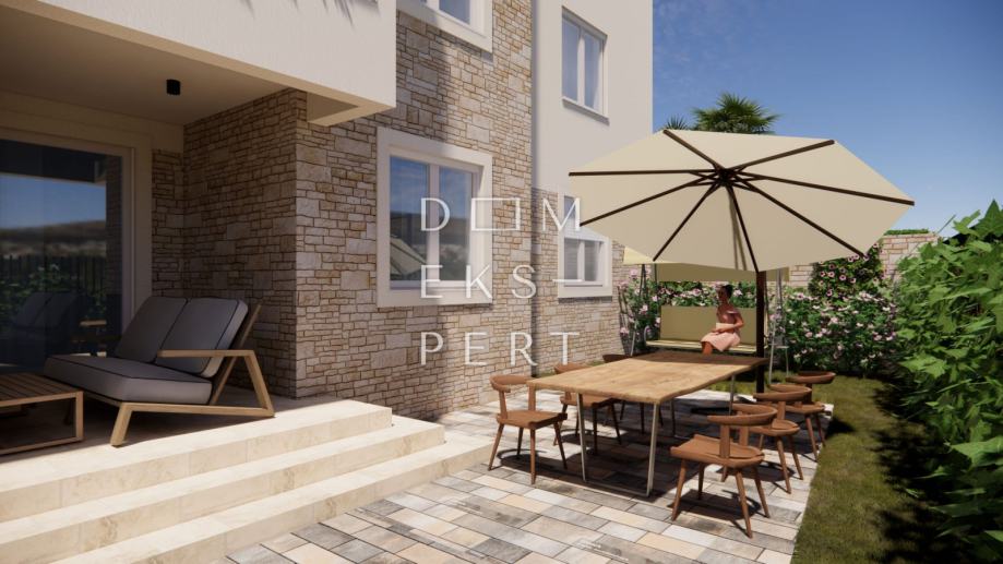 Prodaje se trosoban stan s vrtom ukupne površine 126.41 m² u Brodarici pokraj Šibenika. Smješten je u prizemlju moderne zgrade unutar kompleksa od ukupno 4 objekta, na udaljenosti od 50 metara od mora.