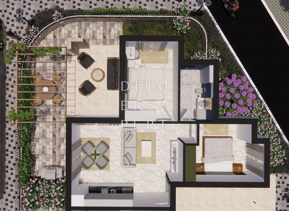 - ukupna površina stana s pripatcima 126.41 m² (vrt, terasa, parkirno mjesto, spremište)