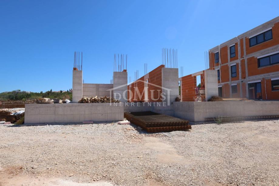 Novogradnja, trosoban apartman sa ukupno 88,36 m2 korisne površine, na 1. katu stambene zgrade koja ima ukupno 8 stambenih jedinica. Apartman je orijentiran na jugozapadnu stranu, sastoji se od hodnika, spremišta, kuhinje, blagovaone i dnevnog boravka u cjelini sa izlazom na natkrivenu terasu 12,50 m2, tri spavaće sobe i dvije kupaonice. Apartman nije namješten, građen je od visoko kvalitetnih materijala, opremljen klima uređajem u dnevnom boravku, instalacije za klimu u svim sobama, električno podno grijanje u kupaonama, protuprovalna ulazna vrata. Apartmanu pripadaju dva parkirna mjesta. Useljenje predviđeno za kraj 2026. Udaljenost od mora kao i do centra 500 m.