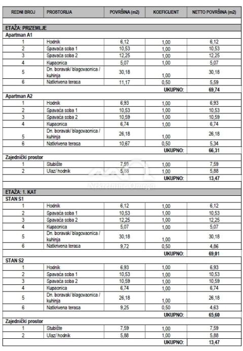 (stambena površina 69,74 m² + 2 parkinga 25 m² + vrt 70 m²)