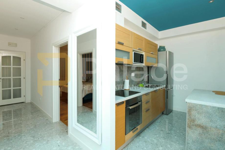 U neposrednoj blizini stana nalaze se svi potrebni sadržaji poput; trgovina, ugostiteljskih objekata, plaža, šetališta i autobusnih stanica.