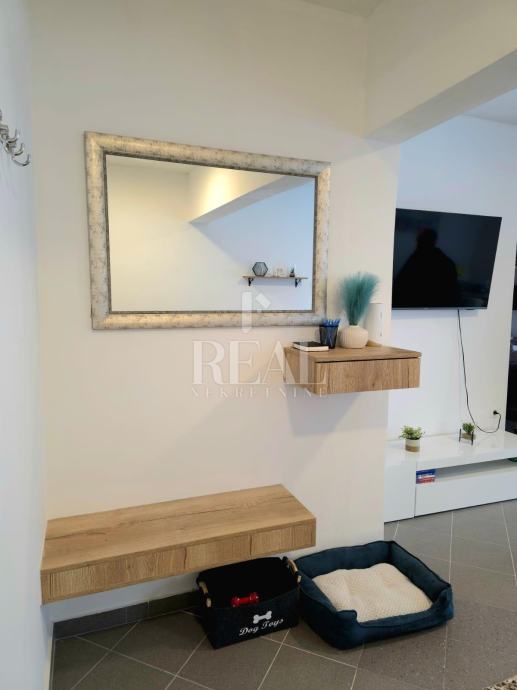 Prizemlje se sastoji od moderno uređene kuhinje s blagovaonicom i dnevnim boravkom, dvije spavaće sobe, kupaonicu te izlaz na sunčanu terasu, idealnu za jutarnju kavu ili večernje opuštanje.