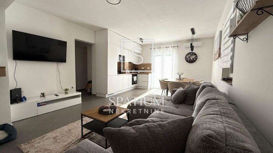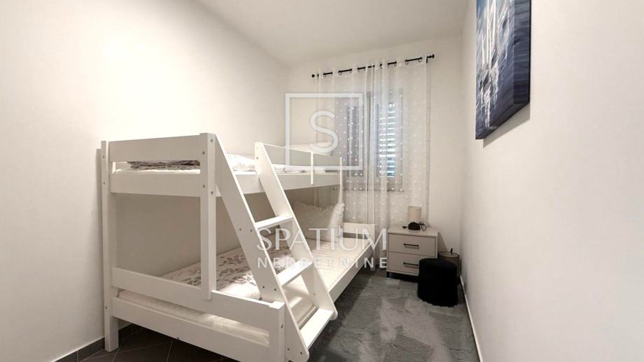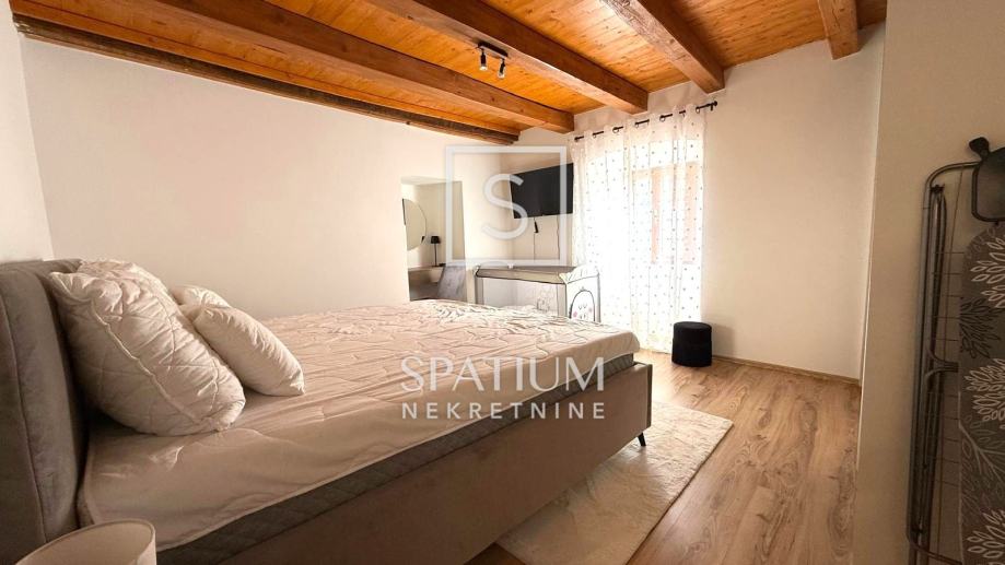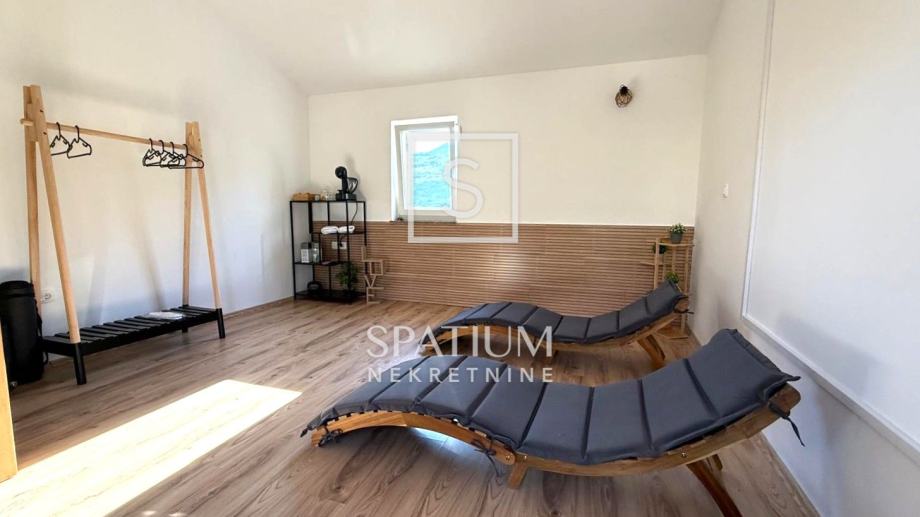 Okućnica je u potpunosti uređena i iskorištena na funkcionalan način – tu se nalaze parkiralište, dječje igralište i grill zona. Tijekom renovacije obnovljene su sve podne i zidne obloge, instalacije, sanitarije i stolarija, a postavljena je nova kuhinja i kompletan namještaj, tako da se kuća prodaje potpuno opremljena. Dokumentacija je uredna, a s obzirom na sadržaje koje nudi, nekretnina je idealna i kao obiteljska kuća i kao investicija za turistički najam.