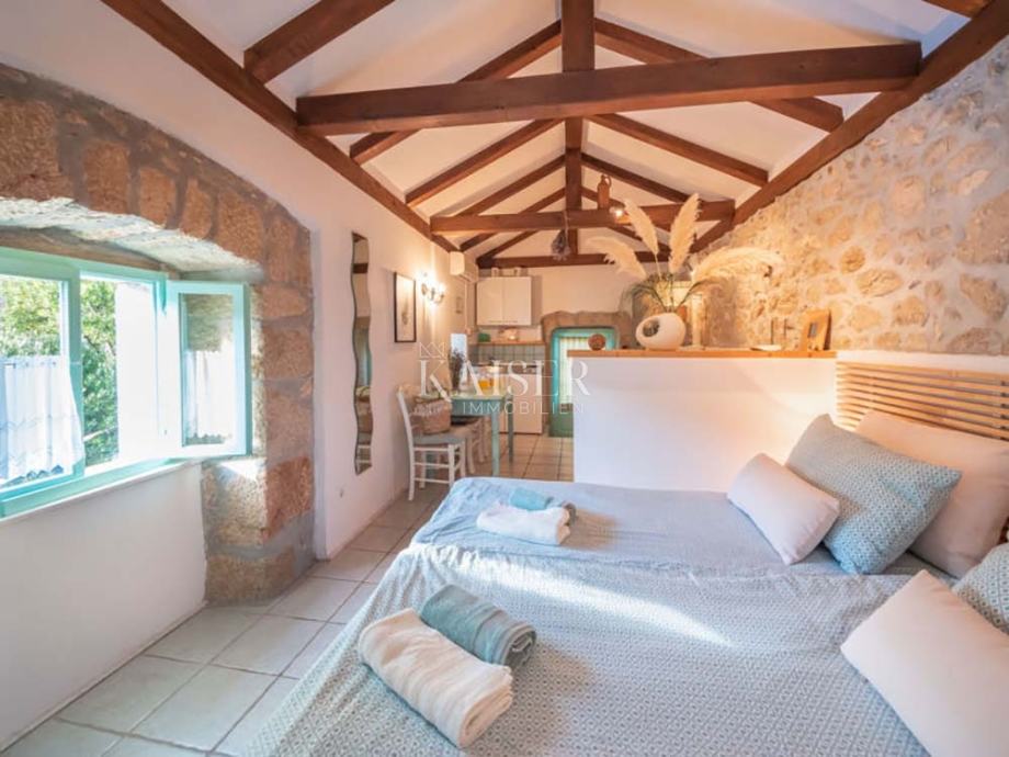 Kuća se sastoji od dvije autentične kamene kuće koje se prodaju kao jedna cjelina, povezane lijepo uređenim dvorištem i vrtom.