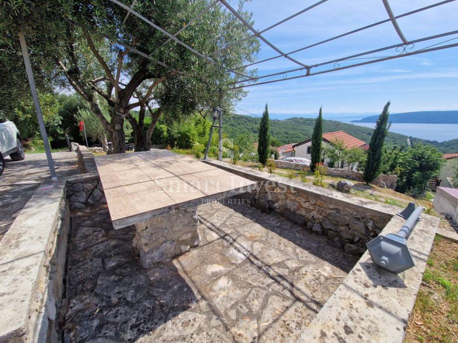Kuća je okružena vrtom i terasama sa kojih se pruža prekrasan pogled na more i otok Cres.
