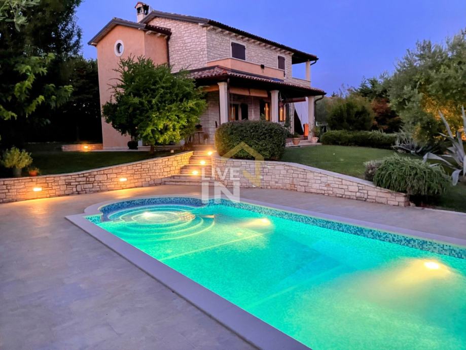 Vila je potpuno ograđena, smještena u mirnom zelenom krajoliku te pruža osjećaj potpunog mira i privatnosti.