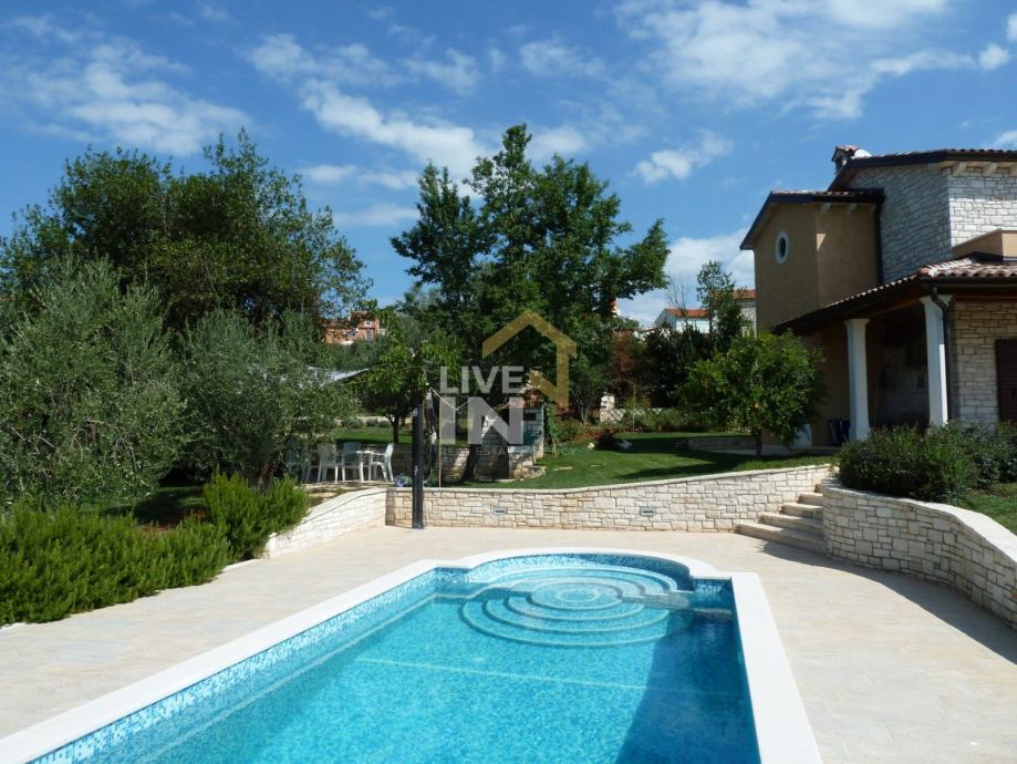 Kuća je posebno kvalitetno građena sa drvenim podovima i stolarijom istarskog stila sa visokim stropovima, drvenim gredama i lijepim detaljima interijera. Grijanje je centralno na plin, a u prizemlju je i peć na drva. U svakoj sobi nalazi se klima uređaj.