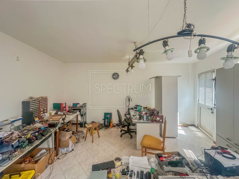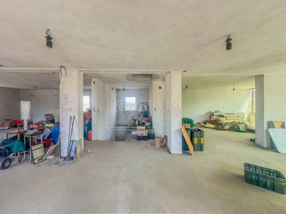 Površina kuće iznosi 283.43 m2. Kuća se proteže kroz prizemlje i kat. Kuća je poslovno-stambene namjene, što novom vlasniku omogućava mogućnost razvoja vlastitog posla. Primjerice, prizemlje bi se moglo urediti kao poslovni dio, dok bi na katu mogao biti stambeni dio. Postoji mogućnost izrade zasebnih ulaza, za prizemlje i za kat. Prostorije su prostrane, a s obzirom da je sama konstrukcija nekretnine zdrava i da kuća ima betonski krov i kvalitetne zidove, kuća zaista predstavlja jednu dobru bazu koja se sa dobrom idejom za investiciju u adaptaciju može nadograditi. Nekretnina je etažirana. Sa kata se pruža pogled na more. Uz kuću se nalazi vrt površine 100 m2. U sklopu vrta može se urediti prostor za parking.