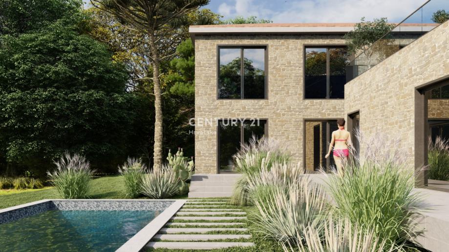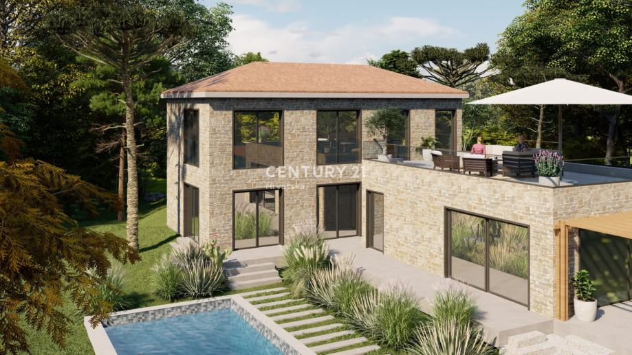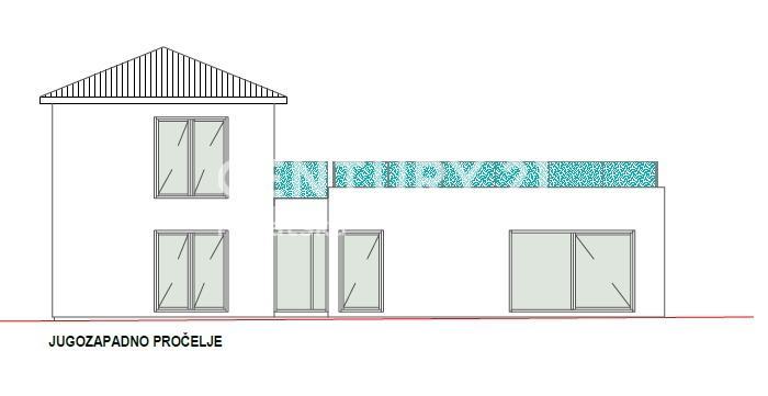 BRTONIGLA, prodaje se građevinsko zemljište od 897 m2 sa građevinskom dozvolom za lijepu kuću s bazenom.