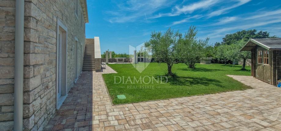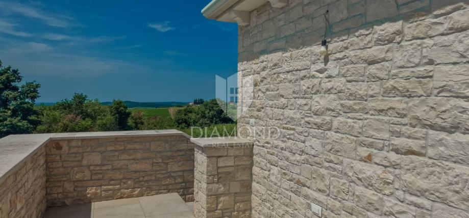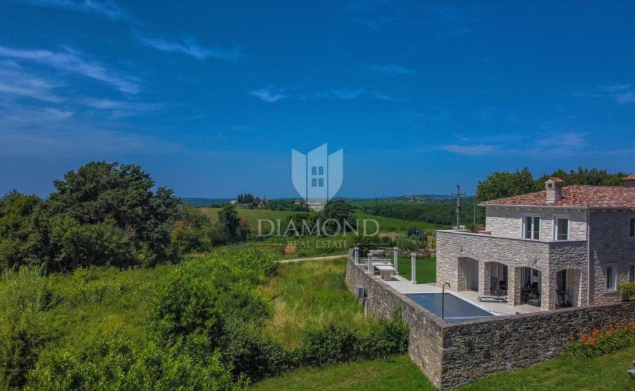 Brtonigla, okolica - na mirnoj lokaciji okružena zelenilom i vinogradima, smjestila se ova predivna samostojeća vila, savršena za one koji traže spoj moderne arhitekture, udobnosti i prirodnog okruženja.
