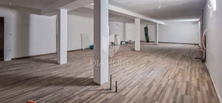 Već pri samom ulasku, dočekat će vas prostran i svijetao dnevni boravak. Kuhinja s blagovaonicom pruža pogled na uređeni vrt i bazen, dok natkrivena terasa poziva na opuštanje i uživanje u toplim danima. Prizemlje upotpunjuju dodarna spava spremište i gostinjski toalet.
