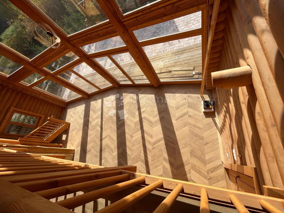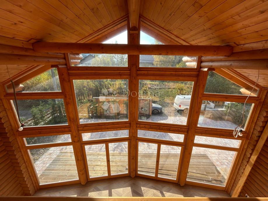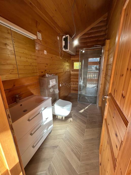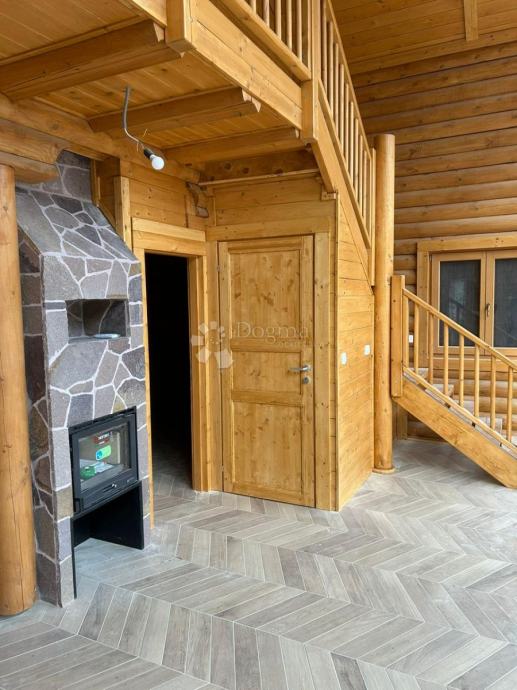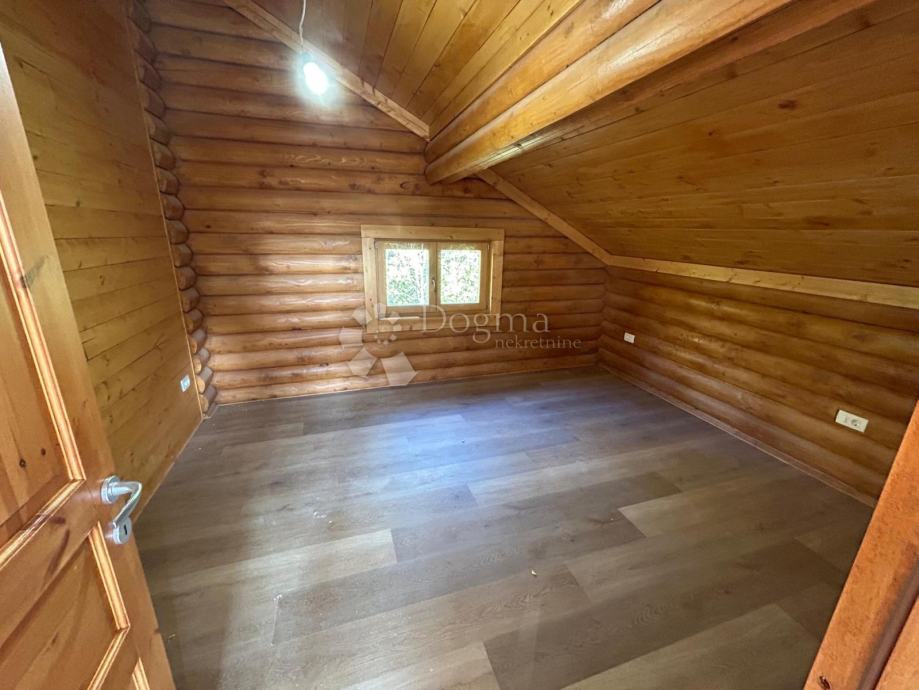 Ova prava brvnara je podjeljena na prizemlje i kat. U prizemlju je smještena kuhinja, blagoaonica, dnevni boravak, spavaća soba te kupaonica sa saunom. Unutarnjim stubištem se odlazi na kat, gdje se nalaze još dvije spavaće sobe te kupaonica.