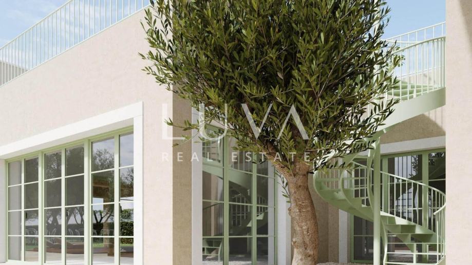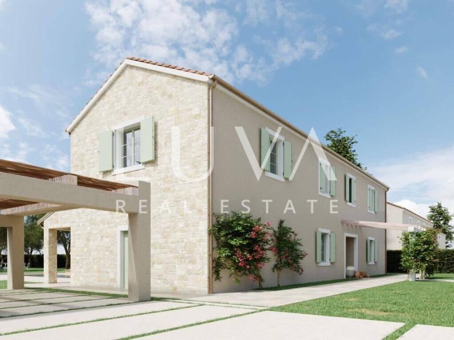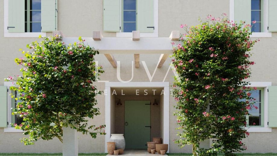 Prodaje se luksuzna vila s bazenom u izgradnji, a završetak radova se očekuje 5.2026. Vila je smještena u mjestu Buje, na zapadnoj obali Istre. Vila će biti izgrađena na velikom zemljištu od čak 4.000 m2 koje je smješteno na povišenom dijelu te se s njega pruža predivan panoramski pogled na more i okolicu. Vila će izvana biti građena u tradicionalnom stilu s kamenim zidovima, kosim krovom s crijepom i šarmantnim drvenim škurama, dok će interijer biti uređen u modernijem stilu. Vila će biti površine 350 m2 i prostirat će se na 2 etaže. U prizemlju će biti smješteni dnevni boravak, kuhinja i wellness prostorija sa saunom i Jacuzzijem. Iz svih ovih prostorija će se kroz velike staklene stijene moći izaći na prostrani lijepo uređeni vrt s velikim vanjskim bazenom. U prizemlju će se dodatno nalaziti i mini apartman sa samostalnim ulazom koji je namijenjen za poslugu.