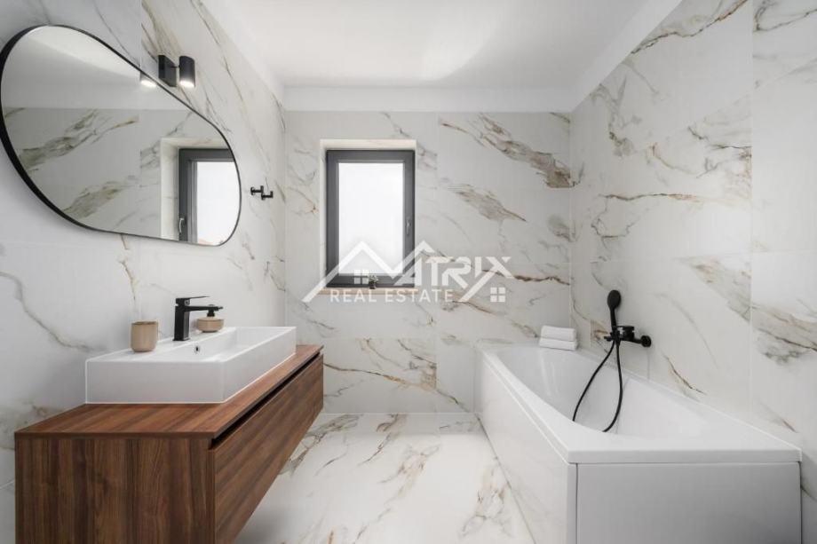 Na gornjoj etaži nalaze se tri prostrane spavaće sobe, svaka s vlastitom kupaonicom i privatnom terasom.