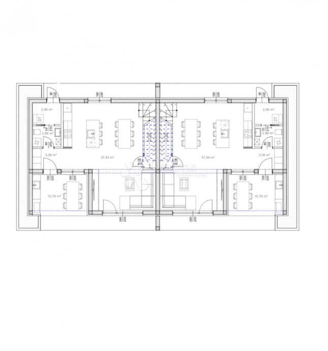 U prizemlju se nalazi prostrani open space dnevni prostor koji se sastoji od dnevnog boravka, blagovaonice, kuhinje te WC-a i spremišta. Na 1. kat vode stepenice gdje su se smjestile 3 prostrane spavaće sobe, 2 kupaonice te natkrivena terasa. U prizemlju se iz dnevnog boravka izlazi na prostranu terasu te dvorište sa bazenom.