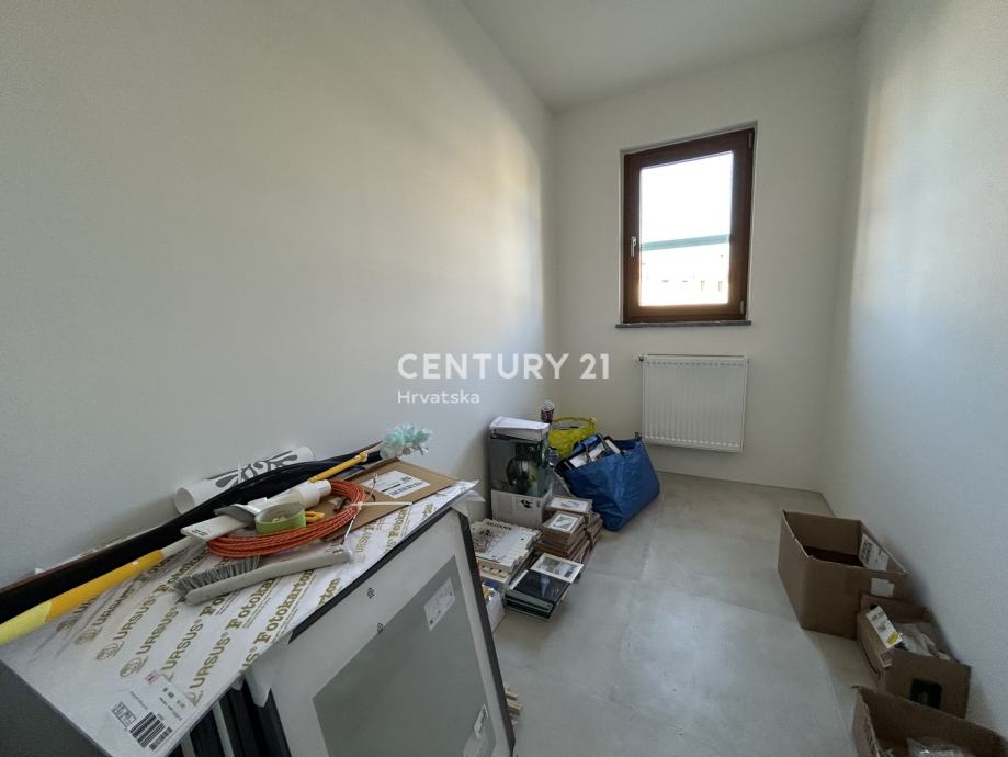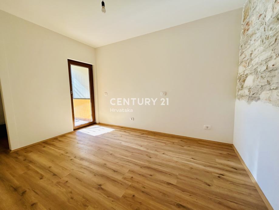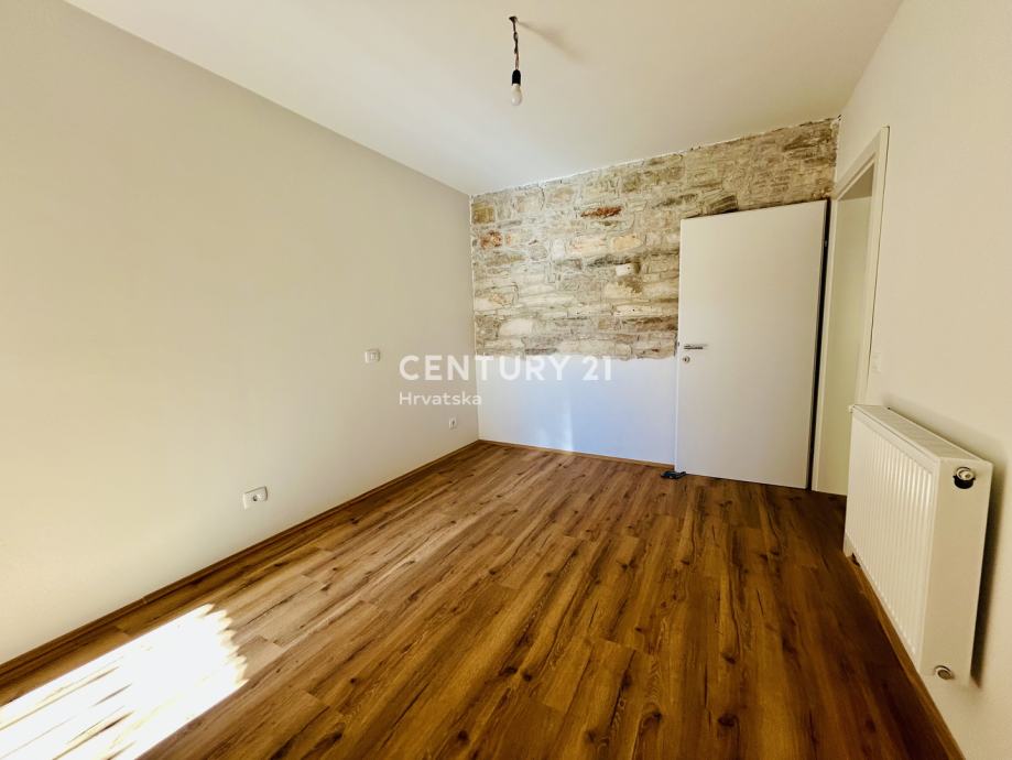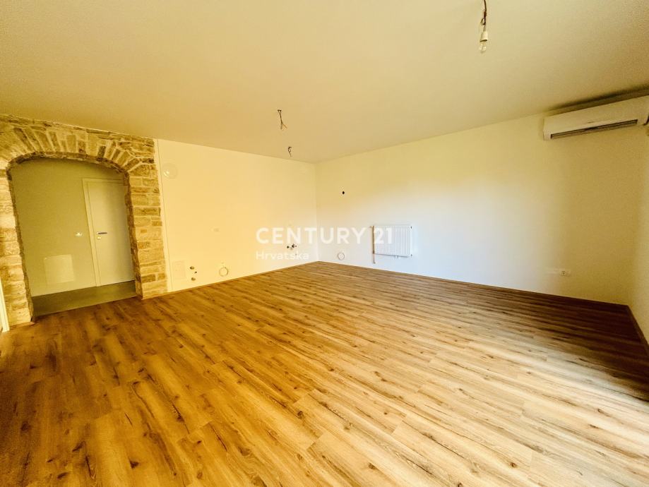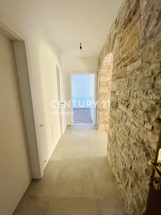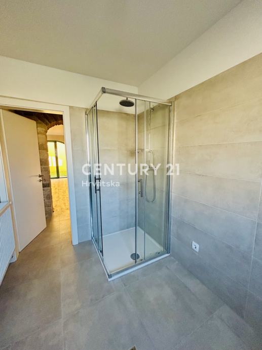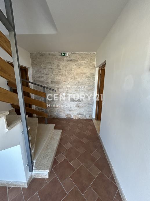 Ovaj moderni stan nudi idealan spoj suvremenog dizajna i autohtone gradnje, ali i funkcionalnosti. Sastoji se od ulaznog hodnika/komunikacije, kuhinje sa blagavaonom i dnevnim boravkom otvorenog tipa, dvije spavaće sobe, kupaonice i dvorišta na kojem se nalazi i natkrivena ljetna kuhinja, pružajući dovoljno prostora za ugodan obiteljski život. Južno-zapadna orijentacija stana osigurava obilje prirodnog svjetla tijekom cijelog dana, dok prozori nude lijep pogled na okolnu prirodu.
