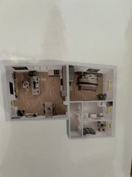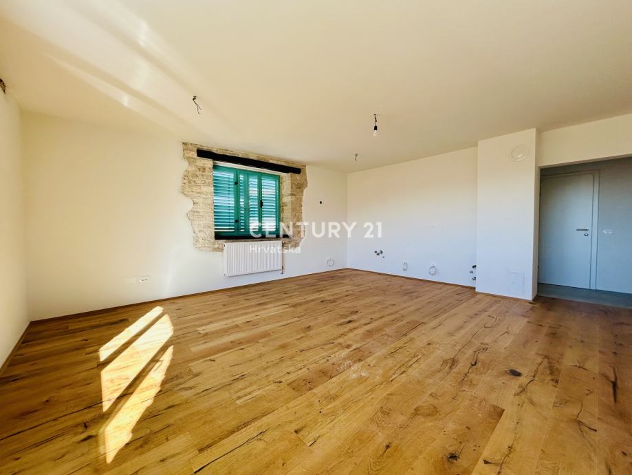 Ovaj moderni stan nudi idealan spoj suvremenog dizajna i autohtone gradnje, ali i funkcionalnosti. Sastoji se od ulaznog hodnika/komunikacije, kuhinje sa blagavaonom i dnevnim boravkom otvorenog tipa, dvije spavaće sobe, i kupaonice, pružajući dovoljno prostora za ugodan obiteljski život. Južno-zapadna orijentacija stana osigurava obilje prirodnog svjetla tijekom cijelog dana, dok prozori nude lijep pogled na okolnu prirodu.