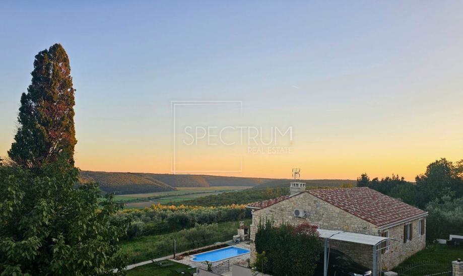 Sa kata kuće pruža se predivan pogled na dolinu rijeke Mirne i u daljini na more.