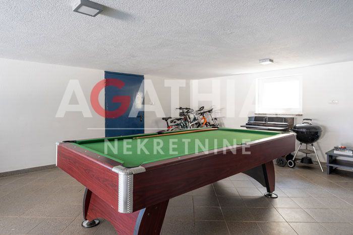 Podrum obuhvaća garažu za dva vozila, kotlovnicu, dva spremišta i stubište koje vodi na gornje etaže.