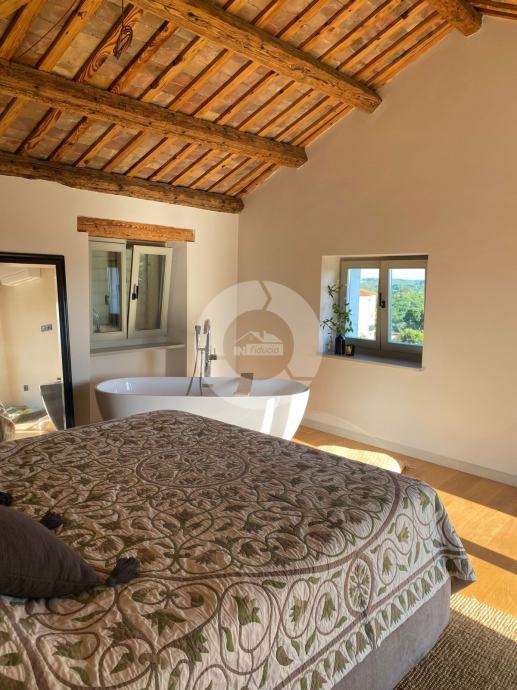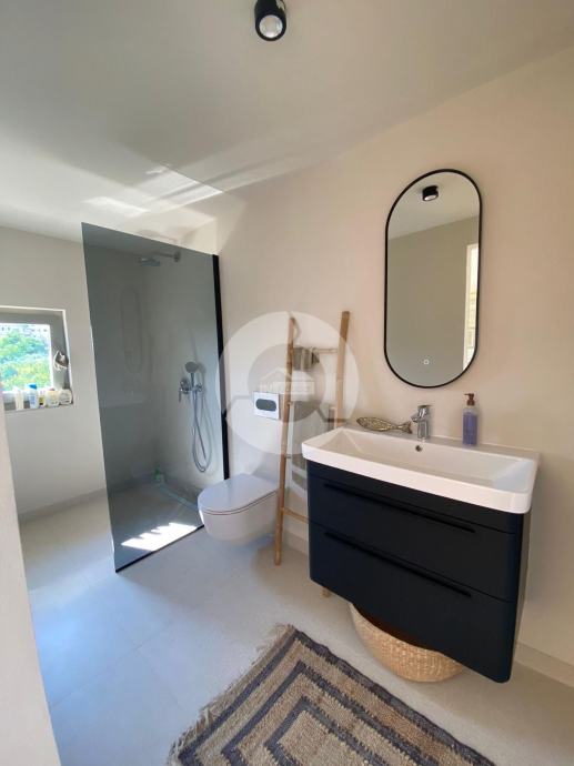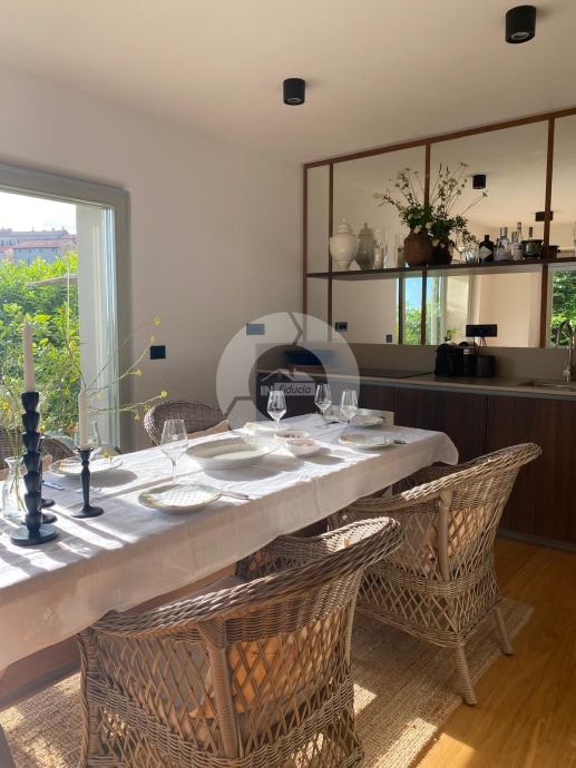 Kuća ima 210 m2 te je orijentirana prema jugozapadu, što osigurava obilje prirodne svjetlosti i vrlo sunčane prostore. Raspolaže s tri spavaće sobe svaka sa svojom kupaonicom pružajući dovoljno prostora za obitelj ili one koji traže dodatne radne ili gostinjske sobe. Zbog renovacije izvršene 2023. godine, interijer odiše suvremenim dizajnerskim rješenjima i visokim standardom uređenja.