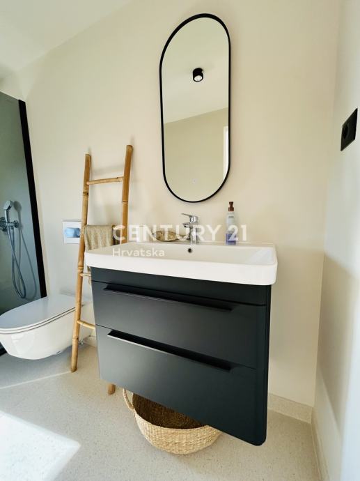 Nedavna adaptacija iz 2024. godine donijela je suvremene elemente i umjetničku notu u svaki kutak kuće. Dizajnerski detalji i pažljivo odabrani materijali ističu estetiku prostora, dok podno grijanje, kamin, klima uređaj i grijanje na struju osiguravaju ugodnu atmosferu tijekom cijele godine.