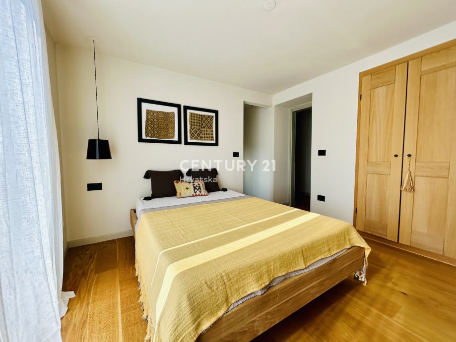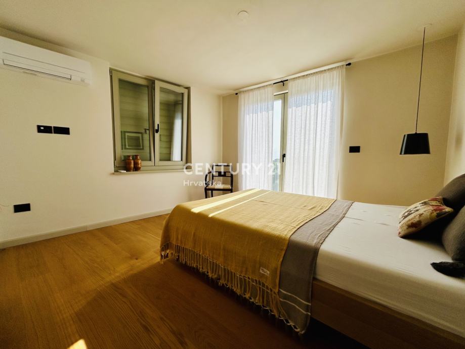 Isto tako unutarnjimstepeništem penjemo se na drugi kat na kojem je smještena master spavaća soba sa vlastitom kupaonicom, prostranom terasom sa panoramskim pogledom na more.