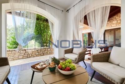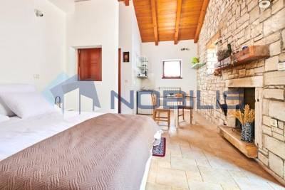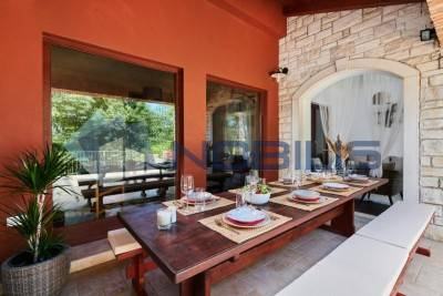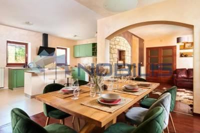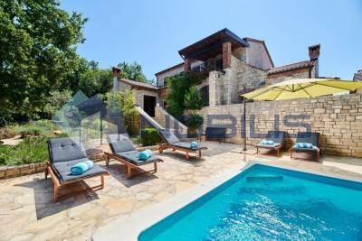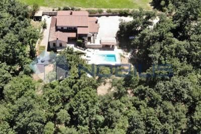 Buje, u ponudi vila smještena nedaleko Buja, okružena je šumom i zelenilom u okućnici od čak 11000 m2, pruža privatnost i mir. Ukupna površina kuće je 250 m2 te ima 4 spavaće sobe, 3 kupaonice, blagovanicu, opremljenu kuhinju te dvorište s bazenom.
