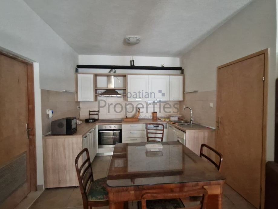 U prizemlju se nalazi dvosobni stan sastavljen od hodnika, kuhinje, kupatila i dvije sobe od kojih jedna izlaz ima lođu sve ukupne površine cca 70 m2.