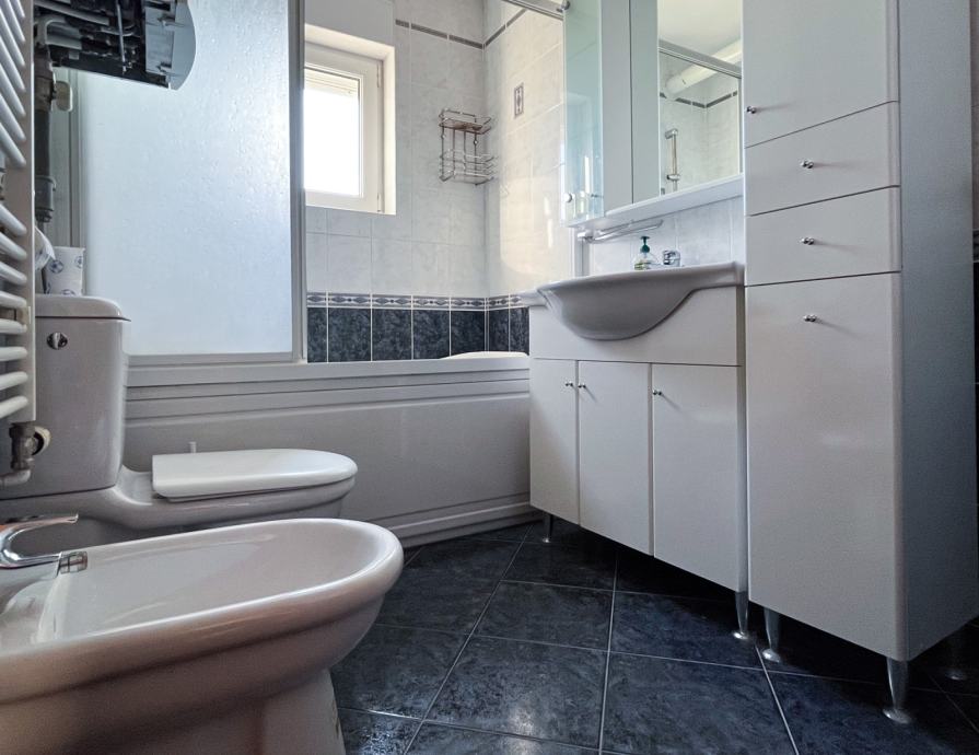 SADRŽAJ: Na prvoj etaži nalaze se open space dnevni boravak s blagovaonicom i potpuno opremljenom kuhinjom te zaseban toalet s umivaonikom. Iz dnevnog boravka i blagovaonice su izlazi na velik, suncem obasjan, balkon. Stepenicama se penje na drugu etažu gdje se nalaze čak tri spavaće sobe, bočni balkon s krasnim pogledom te kupaonica s hidromasažnom kadom, toaletom, bideom i umivaonikom. Na stražnjoj strani nalazi se lijepo dvorište s roštiljem i ljuljačkama savršenim za druženje na otvorenom i dječju igru.
