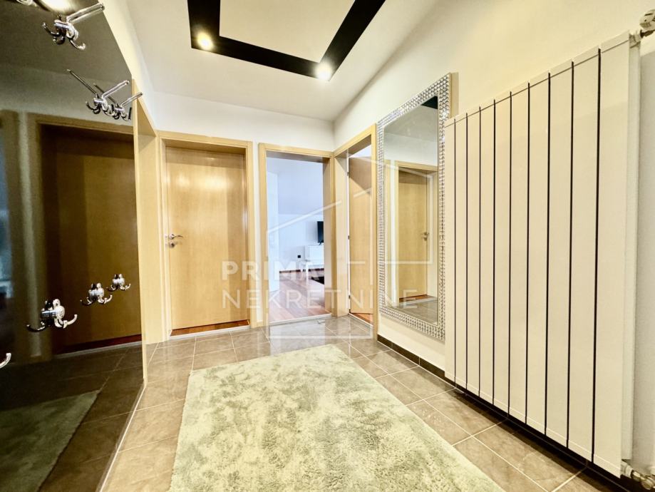 Stan ima poseban ulaz, portafon, alarm, video nadzor, mogućnost optičkog interneta, plinsko centralno grijanje, klima uređaje u svakoj sobi, stropnu rasvjetu i francuski balkon u svakoj sobi. Ispred stana nalazi se natkrivena terasa koju je moguće zatvoriti velikim roletama.